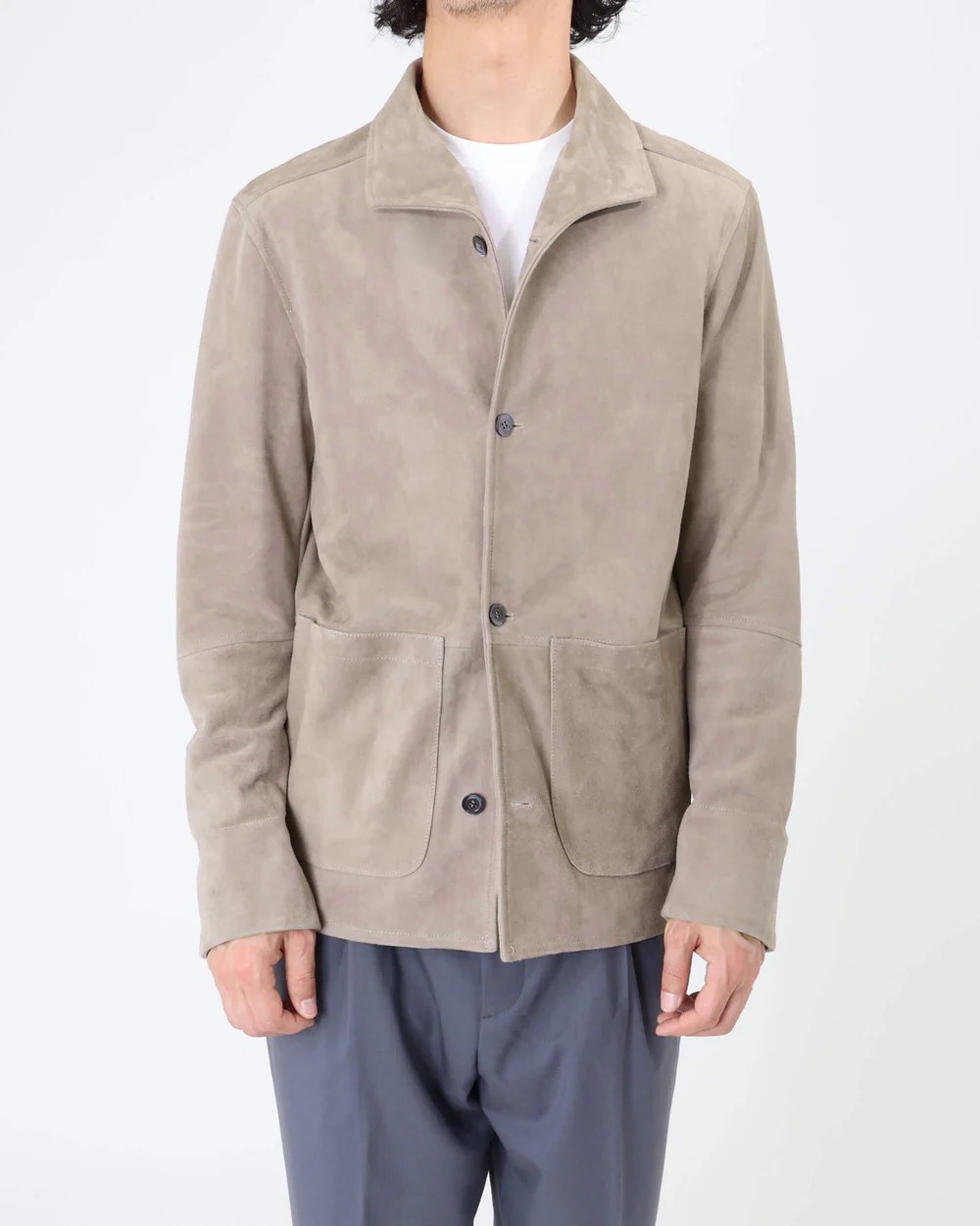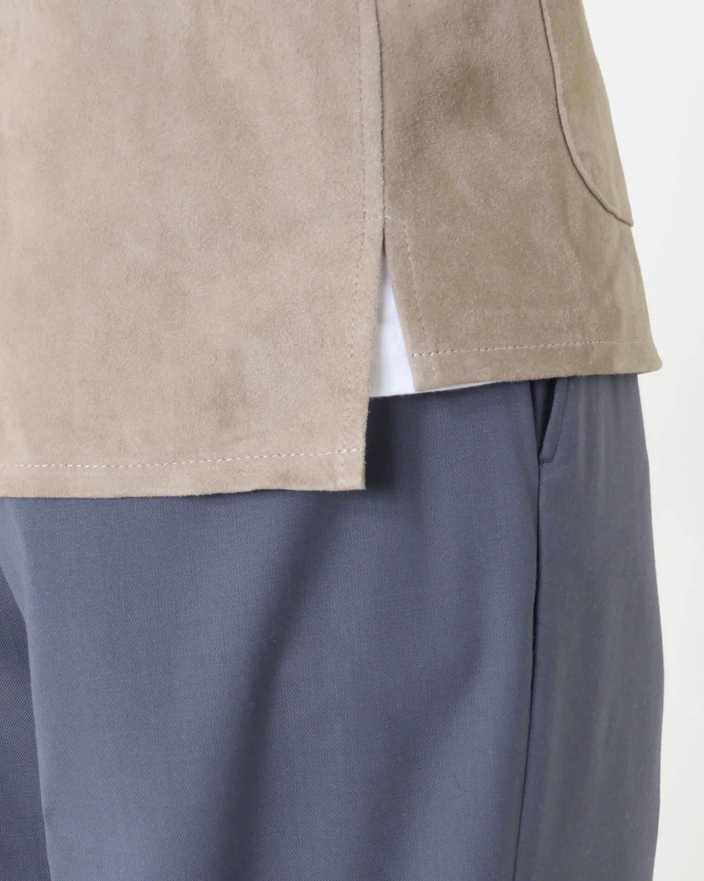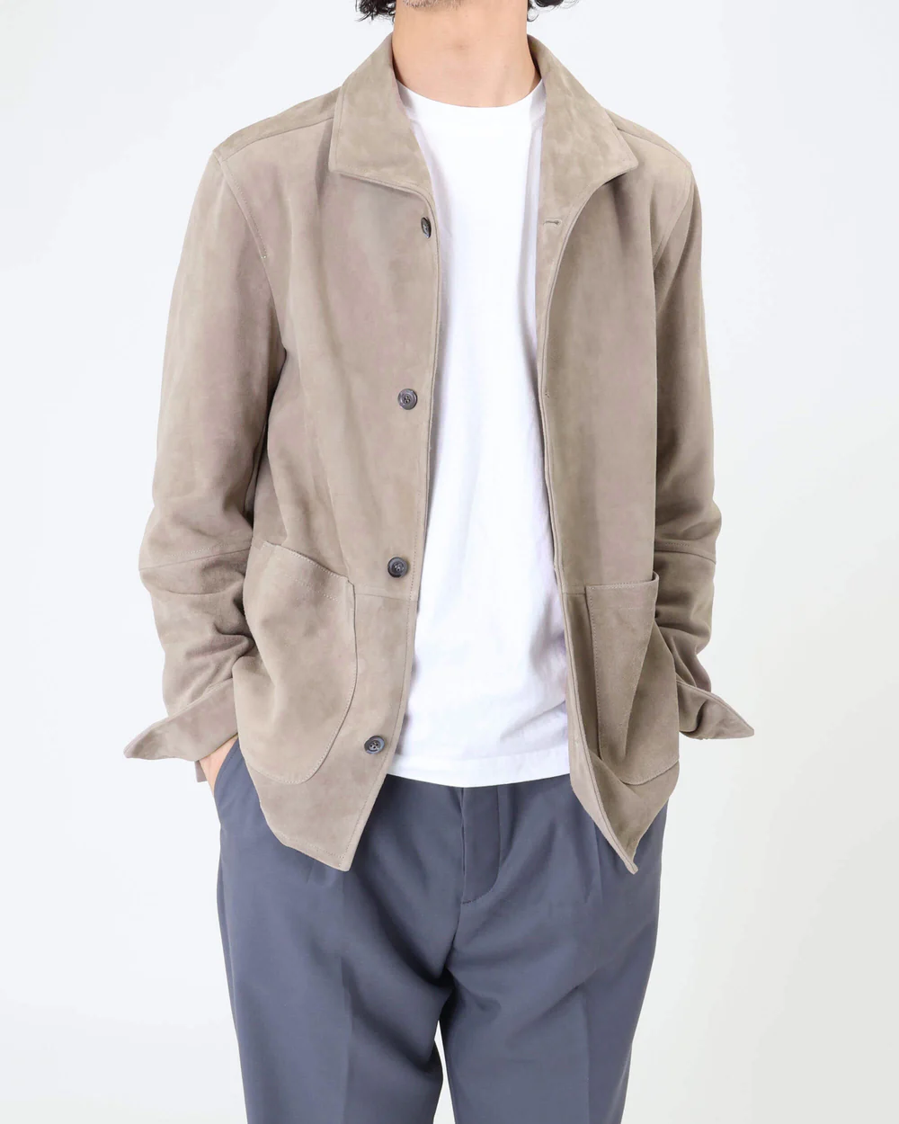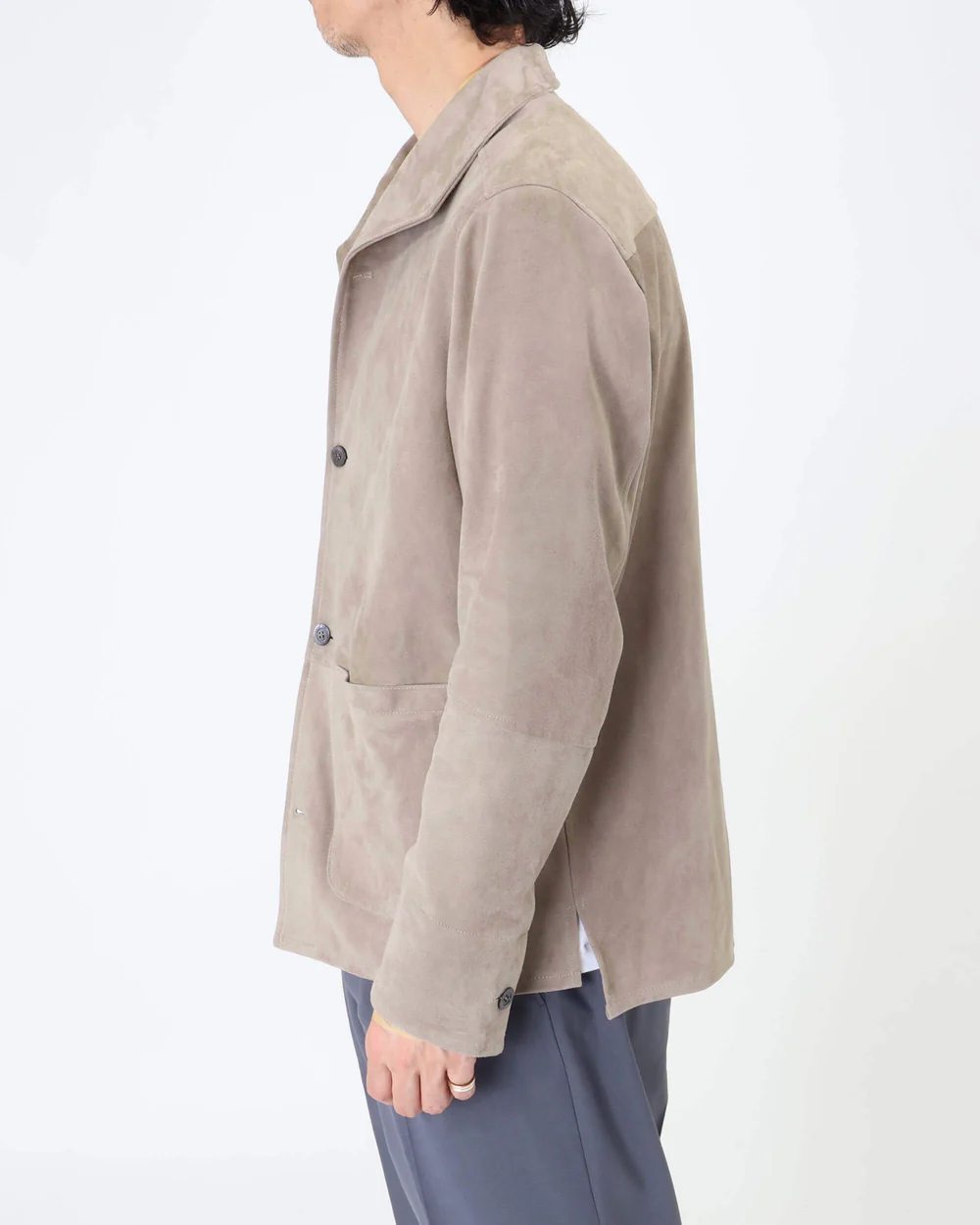 きめの細かいスエードレザーは、半袖の上からでも袖通しのよいナッパ加工を施しており、軽い仕立てからくる着心地の良さを堪能できる仕上がりとなっています。