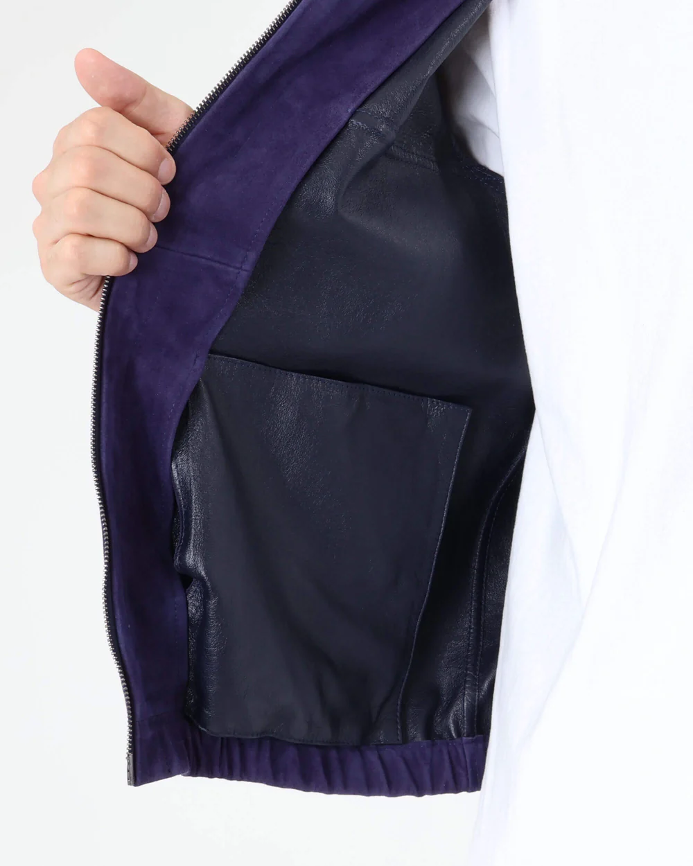 裏面にナッパ加工を施すことで、革本来の厚みや強度を維持しながら、滑らかな袖通りとベタつきのない快適な着心地を実現しています。