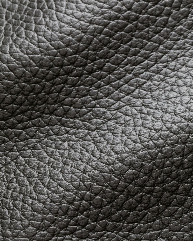 素材には、重厚感のあるシボ(グレイン)が特徴の最高級カーフレザーを採用しています。世界最高峰のラグジュアリーメゾンでも採用されているものと同等の、非常に希少価値の高いレザーを贅沢に使用。使い込むほどに手に馴染むしなやかさと、奥行きのある風合いへと変化していく過程を堪能できる仕上がりです。