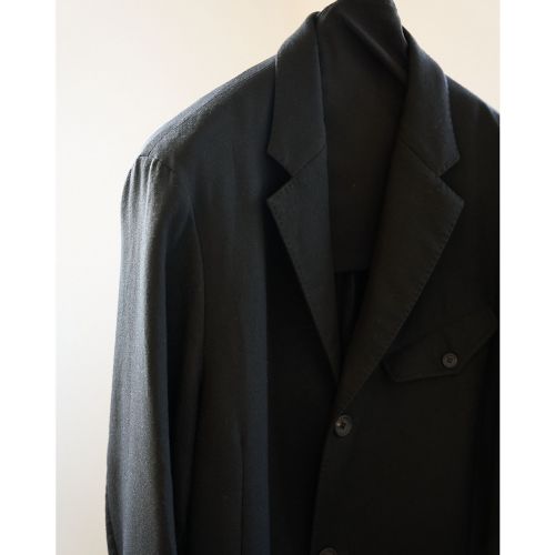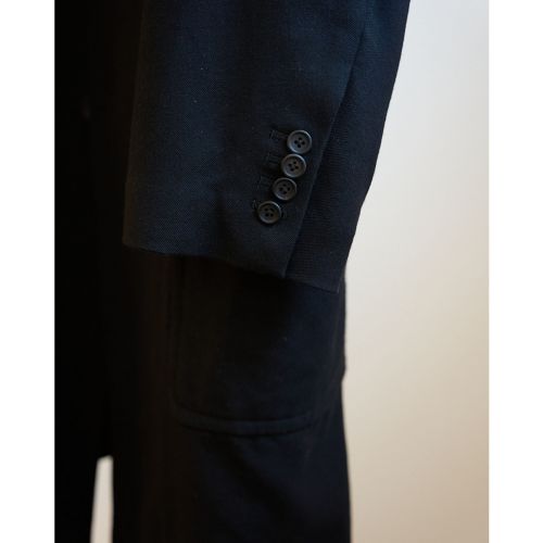 袖口を本切羽、襟~前端にハンドステッチミシン。総裏仕立てできる限り表地の風合いを活かし、製品にて洗い加工をかけて、初めから肌に馴染む着心地です。