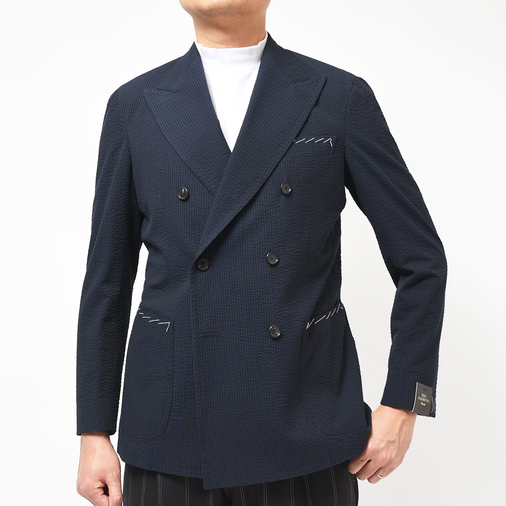 サイズ44でジャストサイズです。肩周りはぴったりでウエストには適度なゆとりがありま す。着心地も軽く、ほどよくナポリを感じられます。夏のジャケットスタイルには欠かせないシアサッカーもナポリな雰囲気です。
