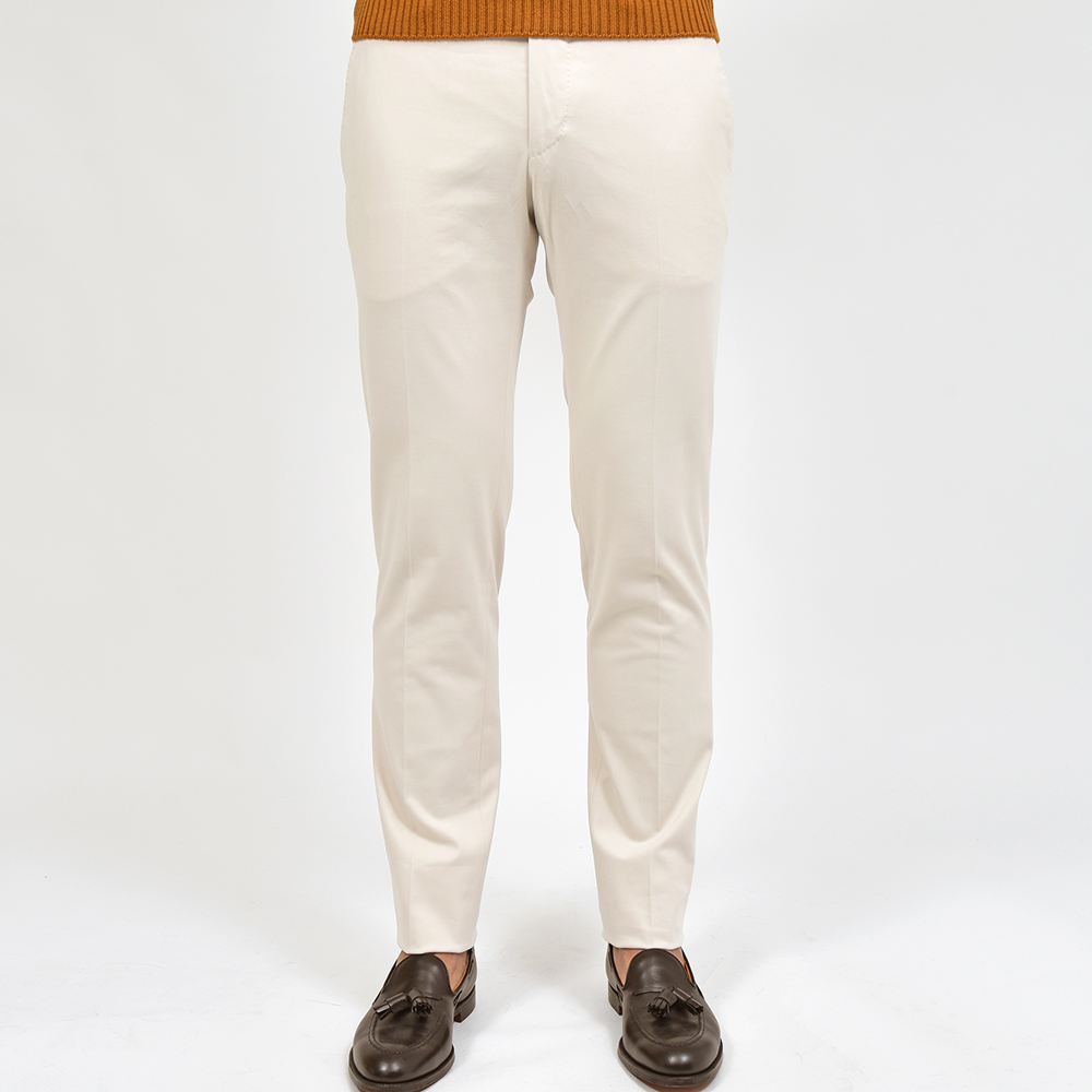 サイズ46でジャストサイズでした。ウエストはベルトが不要なぐらいジャストサイズでヒップもピッタリと収まります。細身ではあるもののトラベラーシリーズ特有のストレッチ性能がストレスを感じない穿き心地。足元をスラリと見せてくれる美脚パンツです。カシミヤ混のラグジュアリーな生地感です。