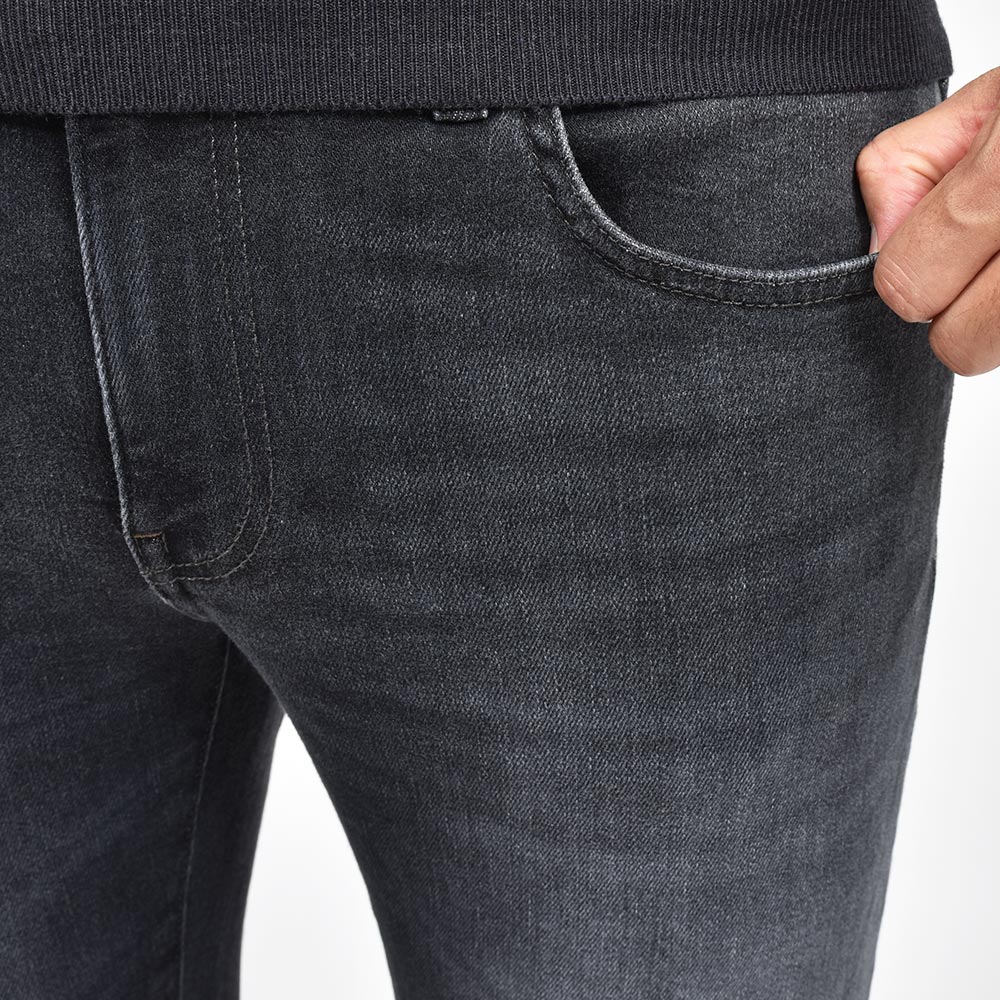 アタリ感を抑えたウォッシュド加工を施したブラックデニムは、カジュアルスタイルからジャケパンスタイルまで幅広く合わせられる高い汎用性。また、大人気の“Travel”シリーズに近い伸縮性あるファブリックを使用していますので、その穿き心地は言わずもがな。シルバーのボタン&リベットに、カーキ色のステッチ使いは、モダンな佇まい。高級感のあるスエードの革パッチが大人の色気を演出してくれます。
