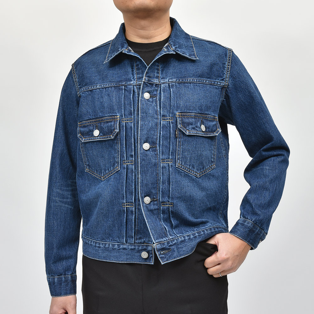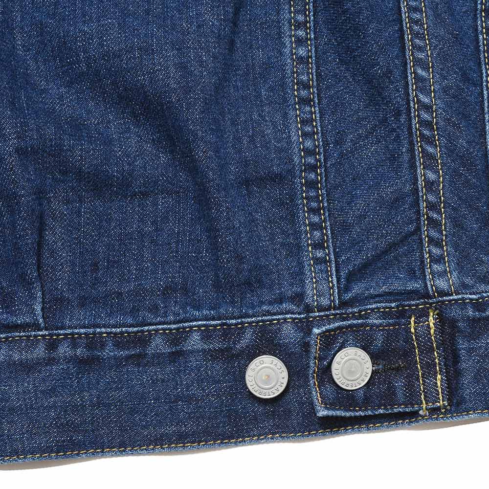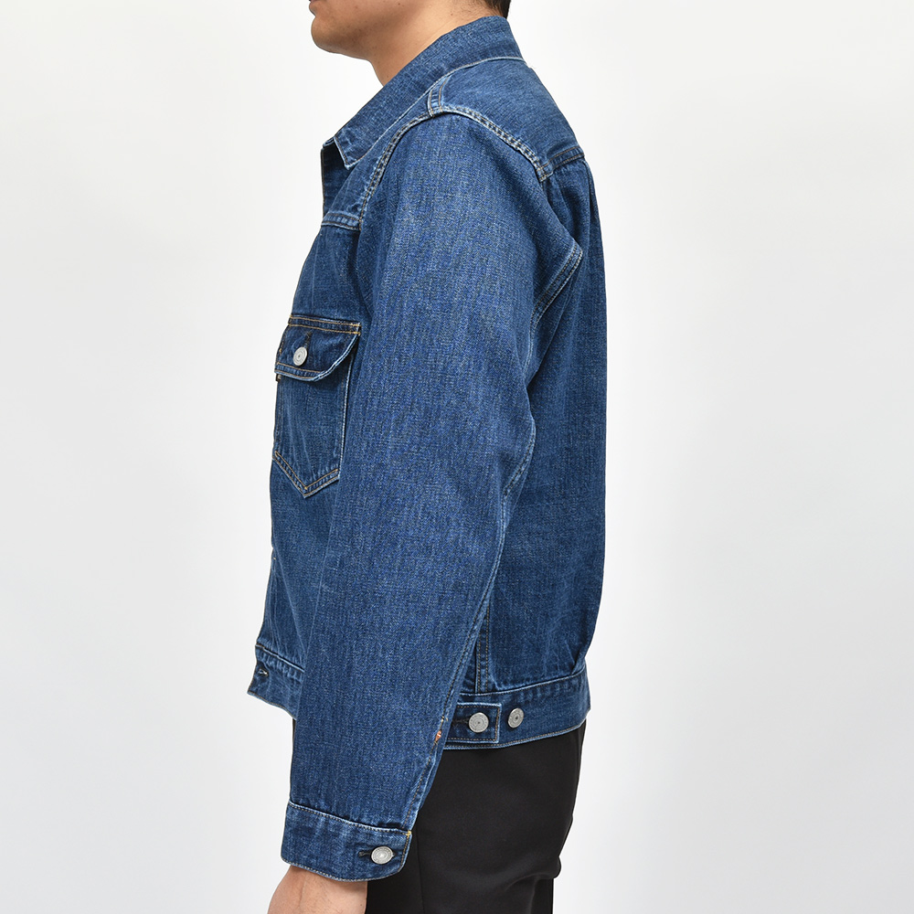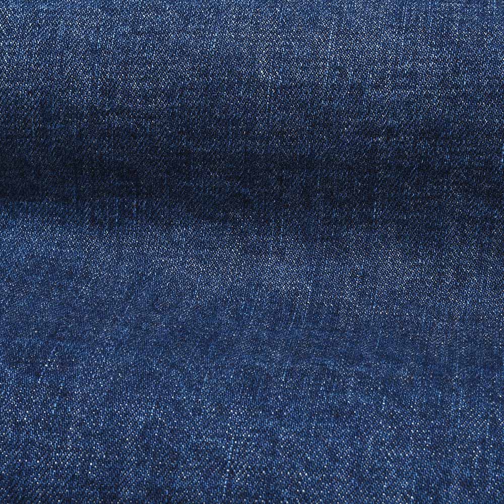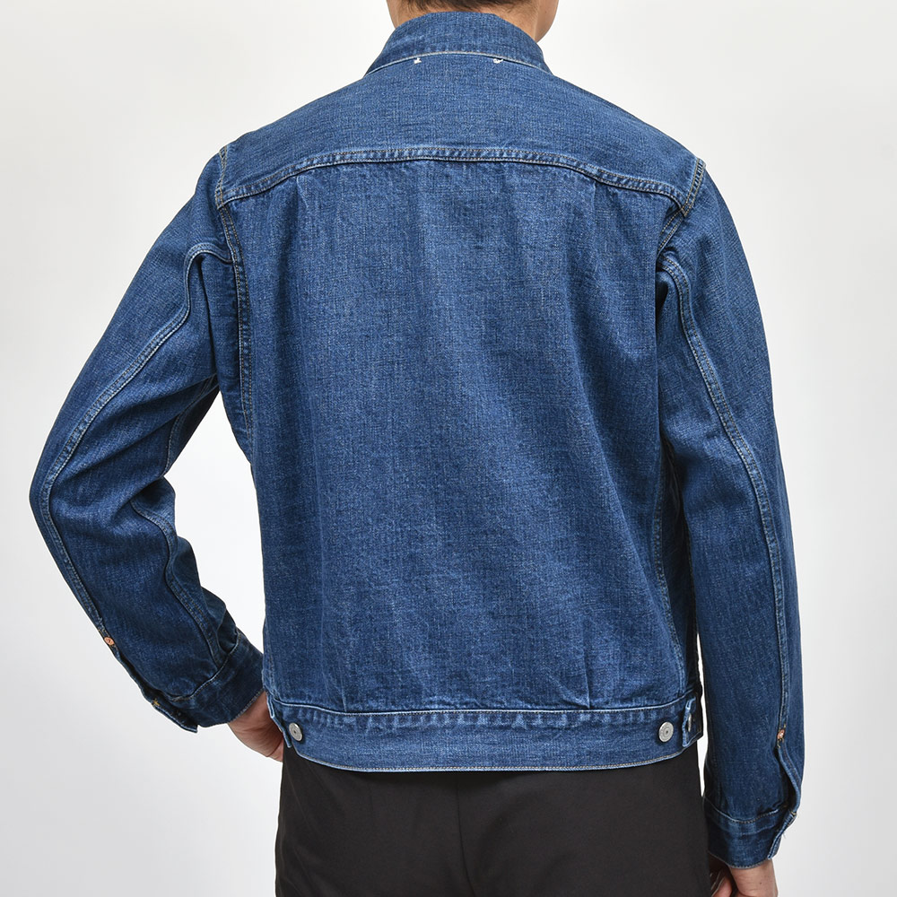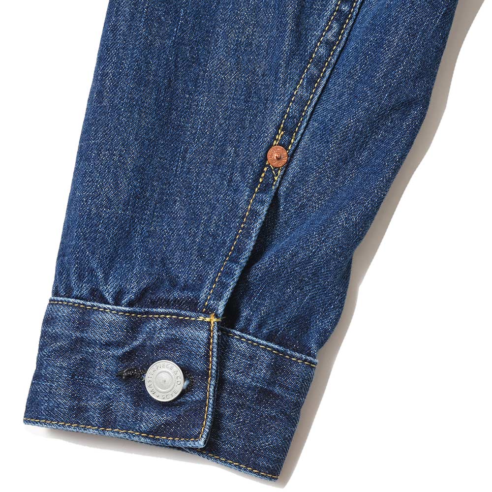 Scyeオリジナルのセルビッジデニムは、縦糸にアメリカのサンホアキン産のコットンとオーストラリア産のコットンをブレンドした7番手のムラ糸を、緯糸には6番手のストレート糸を使用してシャトル織機で織り上げた赤耳付きのデニム。古くは狩猟用のジャケットに採用されていた袖下とサイドパネルとが一体となったピヴォットスリーブは、袖先から裾まで生地を伸ばしていくことで脇の部分に縫製箇所がなく、腕の可動域を広げつつも自然で美しいシルエットを構築するScyeならではのパターンになります。