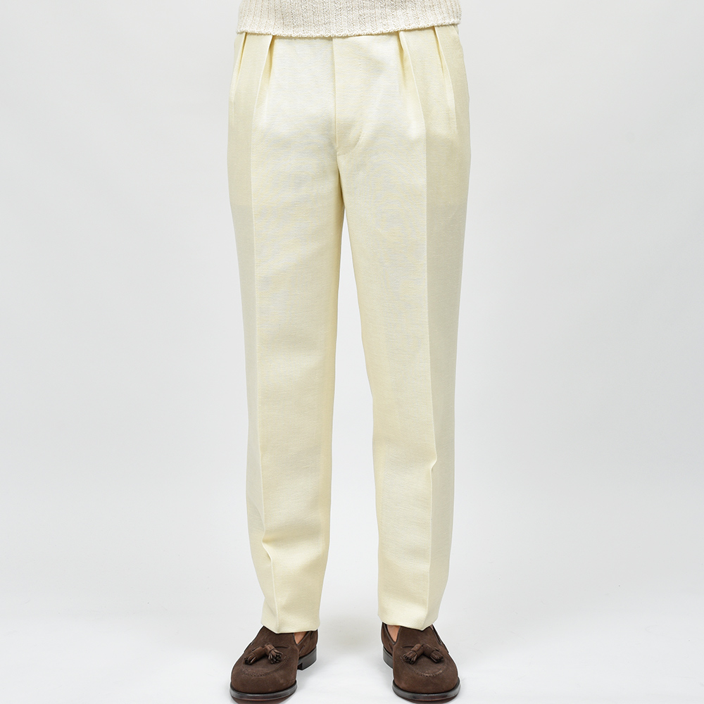 こちらのモデル“REGENT(リージェント)”は、ロンドン・ウエストエンドの中心である 「Regent Street」をイメージ。英国ビスポークのディテールでもある2インプリーツに、股上も深く設定せれた最もベーシックなモデルになります。ドレススタイルは勿論、カットソーやニットをタックインした、カジュアルなスタイルにも合わせることができます。