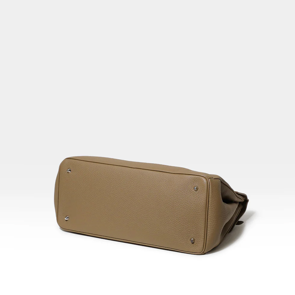 数多くのイタリアブランドのエージェントとして活躍する、神藤光太郎氏とのコラボレーションバッグ。ACATEの人気定番モデル“OSTRO2”をベースに構築した“OSTRO2 SHINDO LIMITED”は、細部にまで神藤氏のこだわりが詰まっています。バッグを置いた時に佇まいが美しくなることを考え、フラップ部分と背面上部にレザーをあてるというバランスを重視したアップデートをしています。また、一番のこだわりがハンドル。手に収まりやすく持ち心地がいい、持っていてもバッグが型崩れしにくいよう取り付け方にこだわりました。持ったときにしっかりしているという「安心感」がある作りになっています。