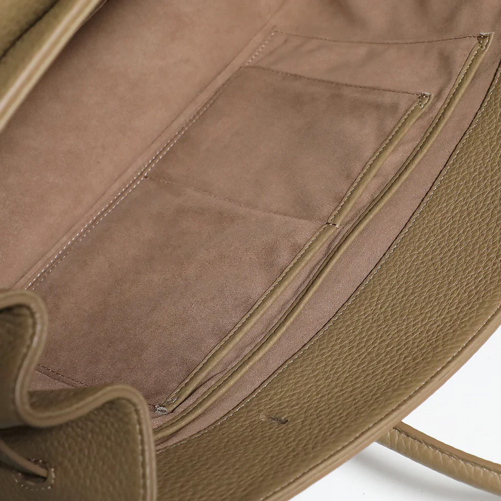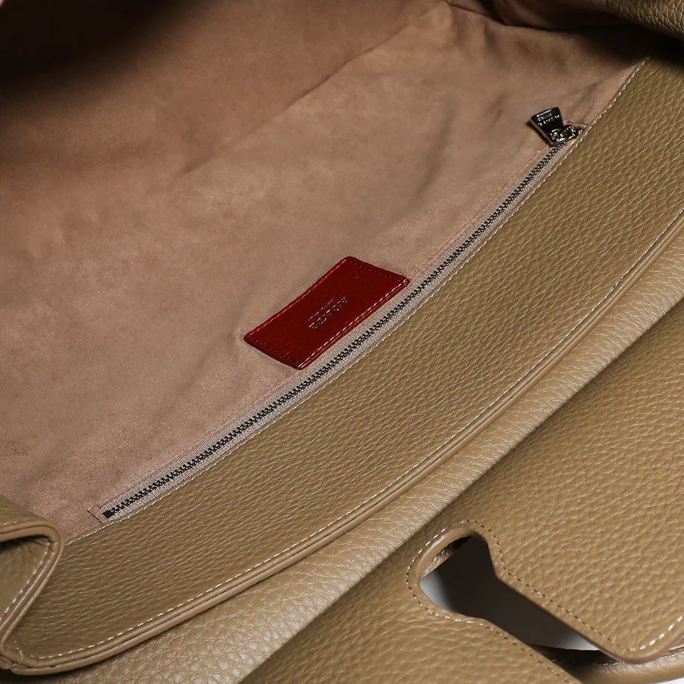 ナチュラルシュリンクレザーを使用した贅を尽くしたような佇まいは、一瞥で感じて取れる確かな大人の色気。いつものスタイリングをよりファッション性の高いものへと昇華させてくれる、推進剤の役割を担ってくれます。上質な素材だからこそ可能とする、クタッとしたレザーの表情がこなれ感を演出。使い勝手の良いシンプルな構造だからこそ、日々の使用を可能にするリアリティが生まれています。