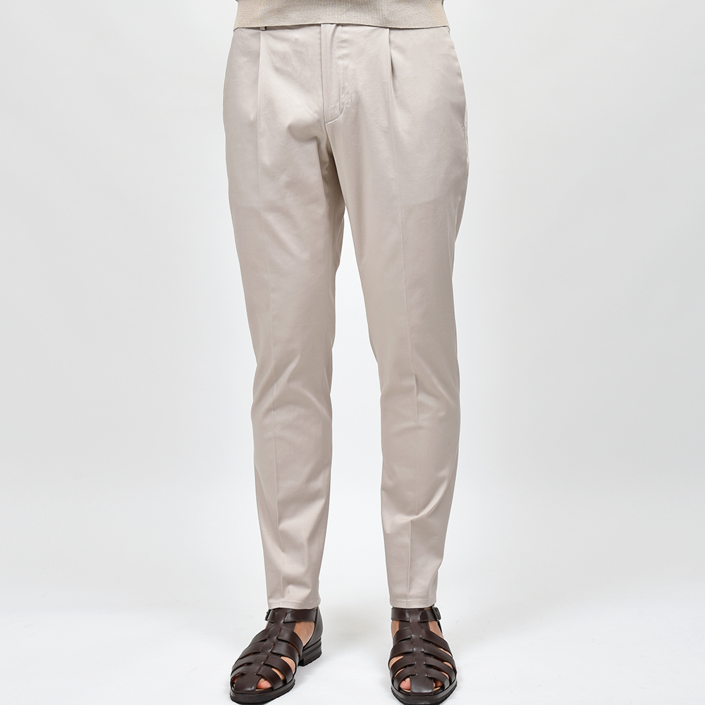 コチラは「SPACE-FIT(スペースフィット)」シリーズのモデル“DANTE(ダンテ)”。1プリーツの程よくゆとりを持たせた腰回りに、高めに設定された膝位置からのテーパードにより脚長効果のあるシルエットに仕上げた、上品な雰囲気を醸し出すシルエットによって、カジュアルからドレスまで様々なシーンで活躍してくれます。