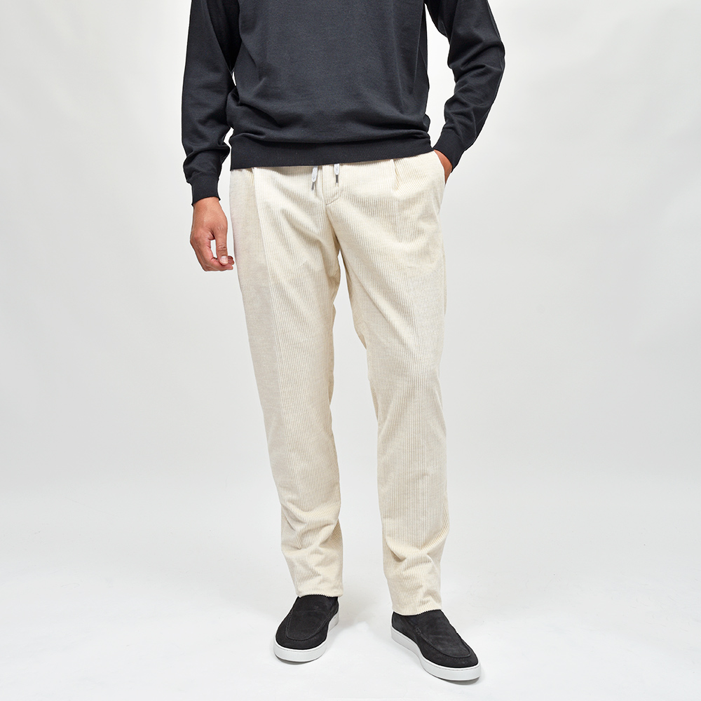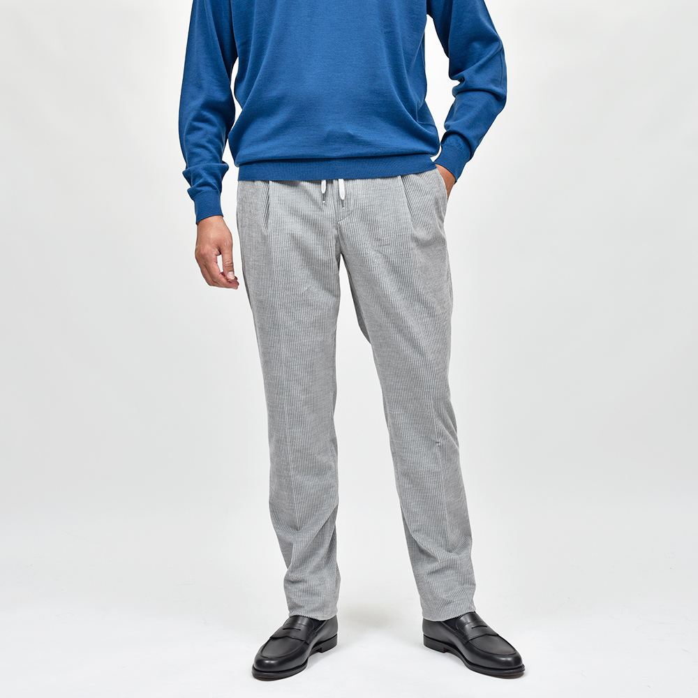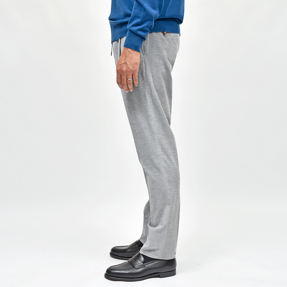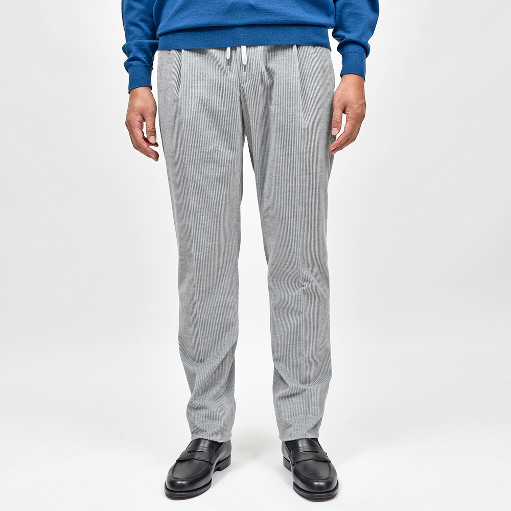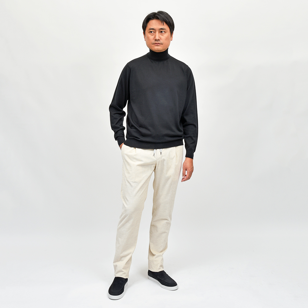 時代にあった雰囲気のソフトなタッチのコーデュロイは、リラックス感のあるドローコードのパンツとも抜群の相性です。