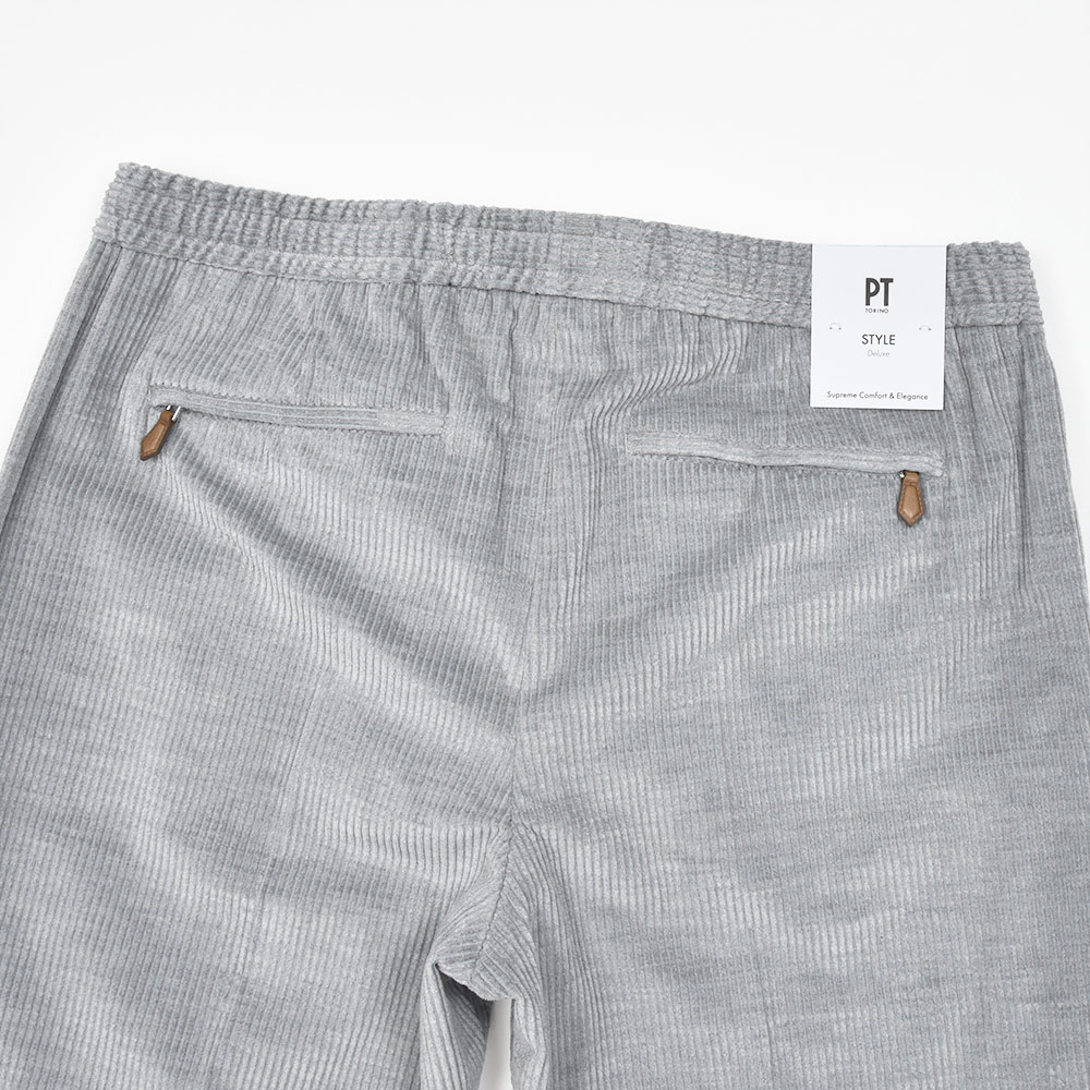 ウエスト部分がドローコード&シャーリング仕様の、程よいリラックス感あるシルエットが魅力の“SOFT FIT”。やや深めの股上に1プリーツ仕様が、程よい腰回りのゆとりを表現しています。しかしながら、テーパードを効かせることでスッキリとしたPT TORINOらしい上品なシルエット。また、バックポケットはジップ仕様となっており、レザーの持ち手が高級感をもたらせます。その為、他ではないワンランク上の雰囲気があるリラックスパンツとなっています。