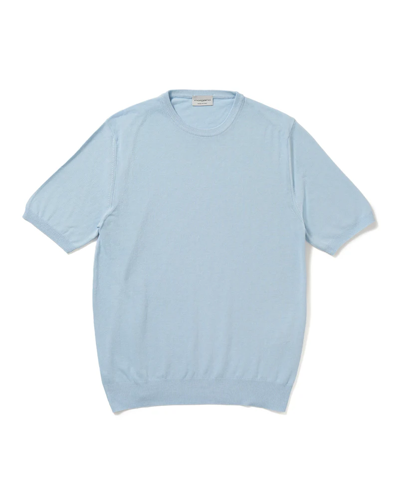 美しい艶感と非常に滑らかなタッチが特徴のエクストラファインメリノウールを使用したハイゲージニット。やや肉感のあるハイゲージですので、インナーは勿論サイズアップして少しゆとりを持って一枚で着ても映える一着となっています。