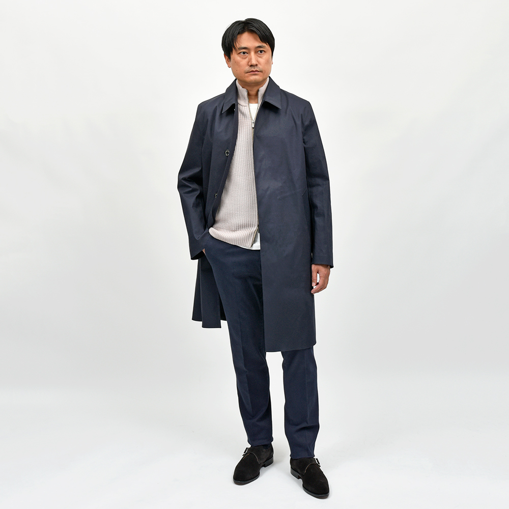 サイズ40がジャストサイズです。肩周りから身頃にかけて、ゆったりとしたサイジングで着ていてストレスのない感じです。着丈も長めでエレガントな印象です。定番のステンカラー"DUNKELD"です!