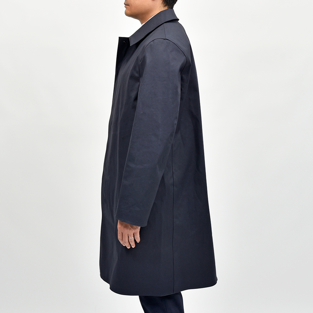 MACKINTOSHを代表するゴム引きコート“DUNKELD(ダンケルド)”。19世紀初頭に誕生したゴム引きコートは、現在も当時の製法のままスコットランドで手作りされています。ミニマルなデザインの美しいシルエットのコートは、張りのあるゴム引きを使用していても立体的なパターン構造によって着心地が担保されています。また、こちらのモデルにはウール素材を使用した取り外しできるライナーが付属しているため、春秋のみならず冬場でも活躍する一着となっています。