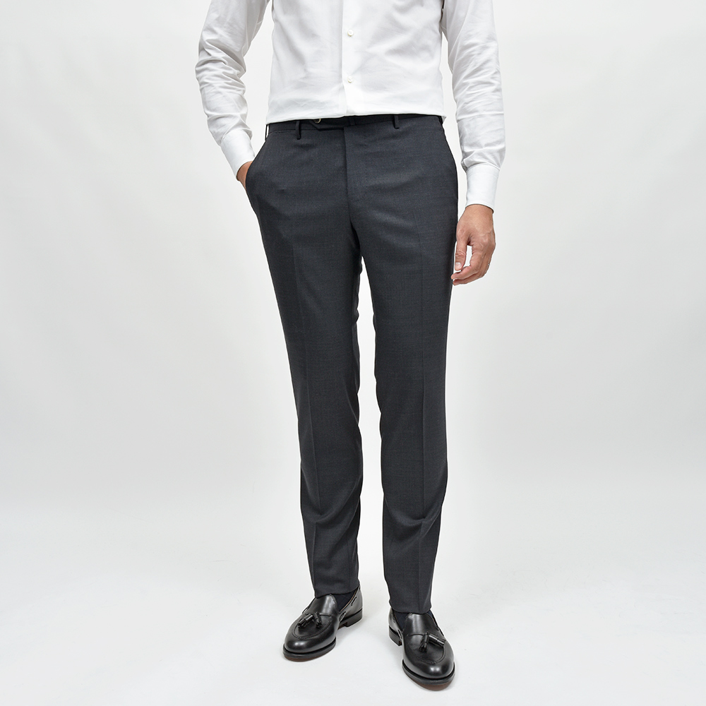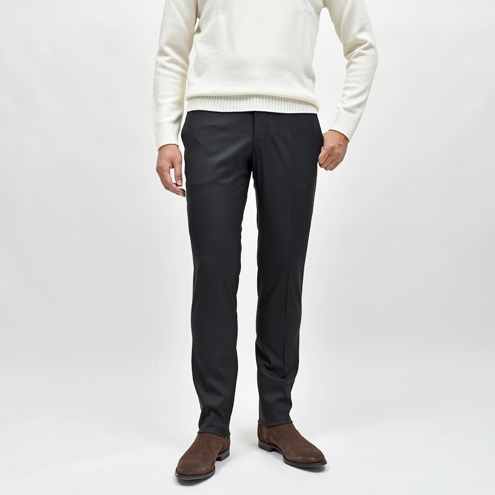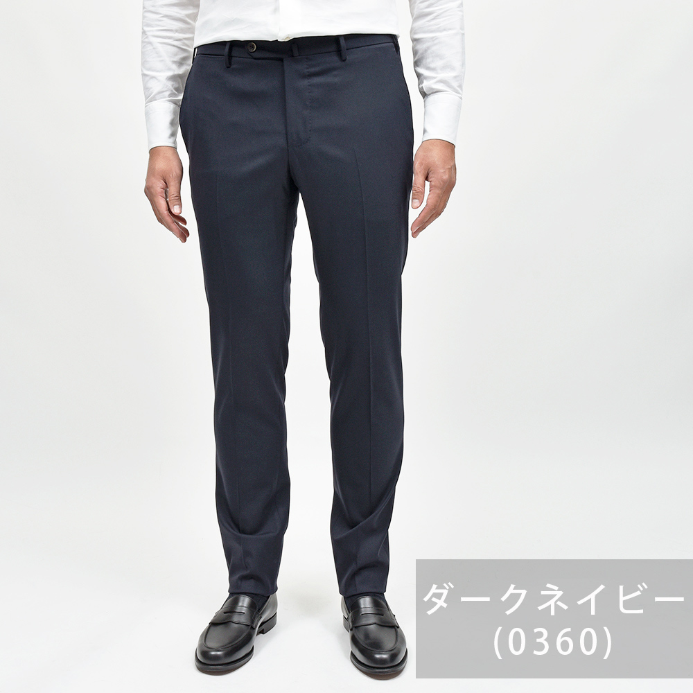 一度穿くとやめられないビジネスパンツの金字塔”TRAVELLER”シリーズ。こちらは、目付270gのシーズンを問わず通年で着用できるサージ生地を使用したドレスパンツになります。言わずもがなのストレッチ性は、羽が生えたかのような軽さのある穿き心地。使用されている素材は上品な艶感を持ち、柔らかで通気性に優れ、またシワになりにくく、立ったり座ったりを繰り返すビジネスシーンにおいて必須となる機能性を備えています。そして何よりも自宅の洗濯機で洗うことができ、アイロンをかける事でシワも簡単に伸びます。