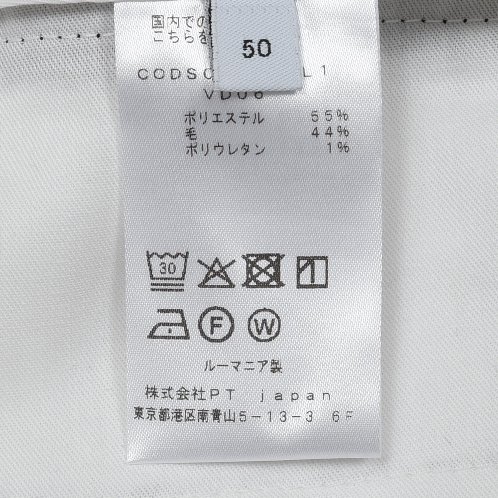サイズ50がジャストサイズです。ウエストからヒップ・ワタリにかけてスッキリとしたフィッティングで見た目もシャープです。裾にかけてテーパードしたスリムなシルエットです。定番のテクニカルウールです!