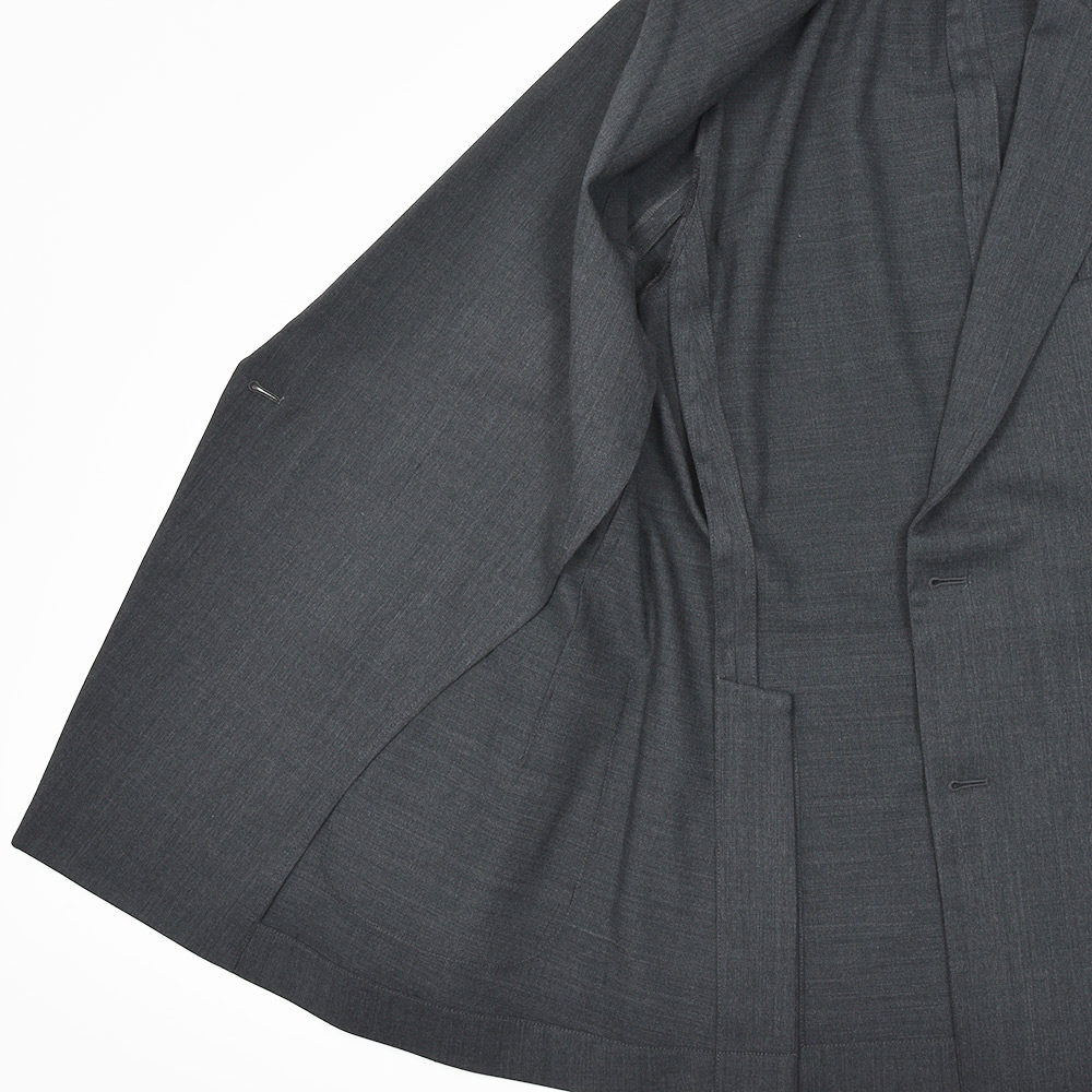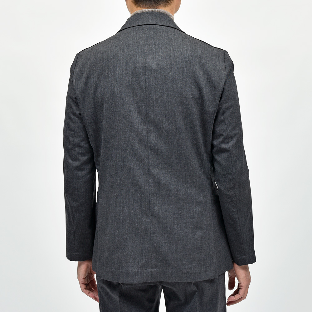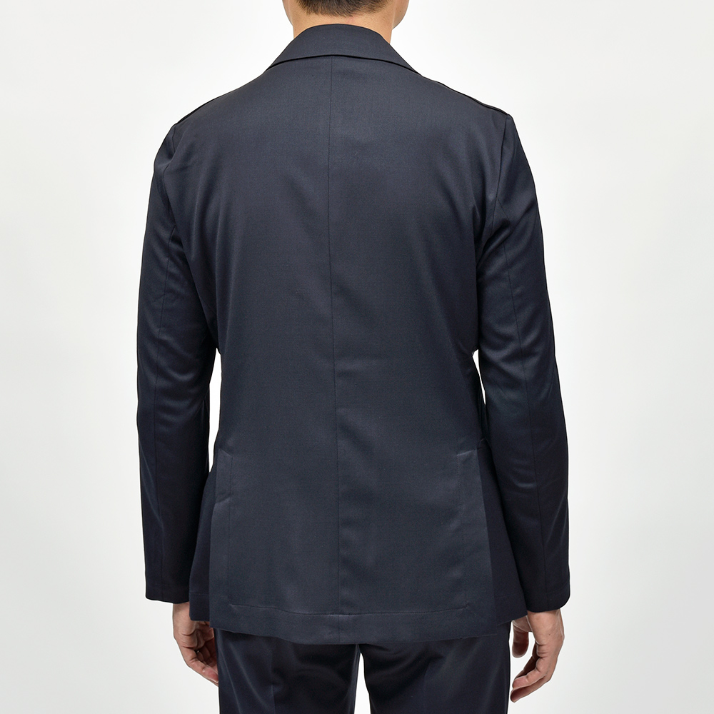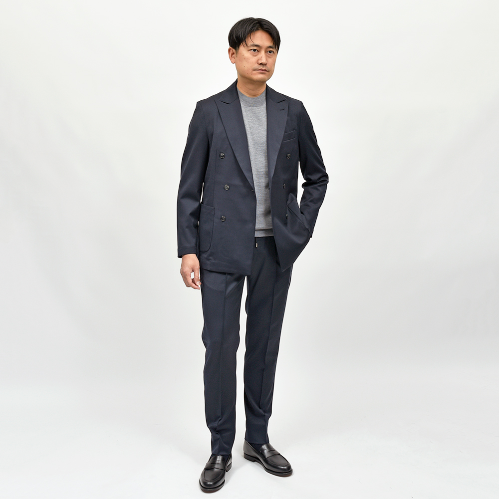通常のラインよりもラグジュアリーなファブリックを使用したgiabsarchivioのハイエンドライン“giabsarchivio GOLD”。コチラは真夏以外で着用できるサージ生地のテクノウールになります。目付け275gと汎用性の高いややライトな生地に、高級感のある艶感。ほとんど起毛感のないサージですので、秋から春までの長い期間で着用可能です。また、ウォッシャブルですので家庭での洗濯が可能となった、非の打ち所がない逸品となっています。
