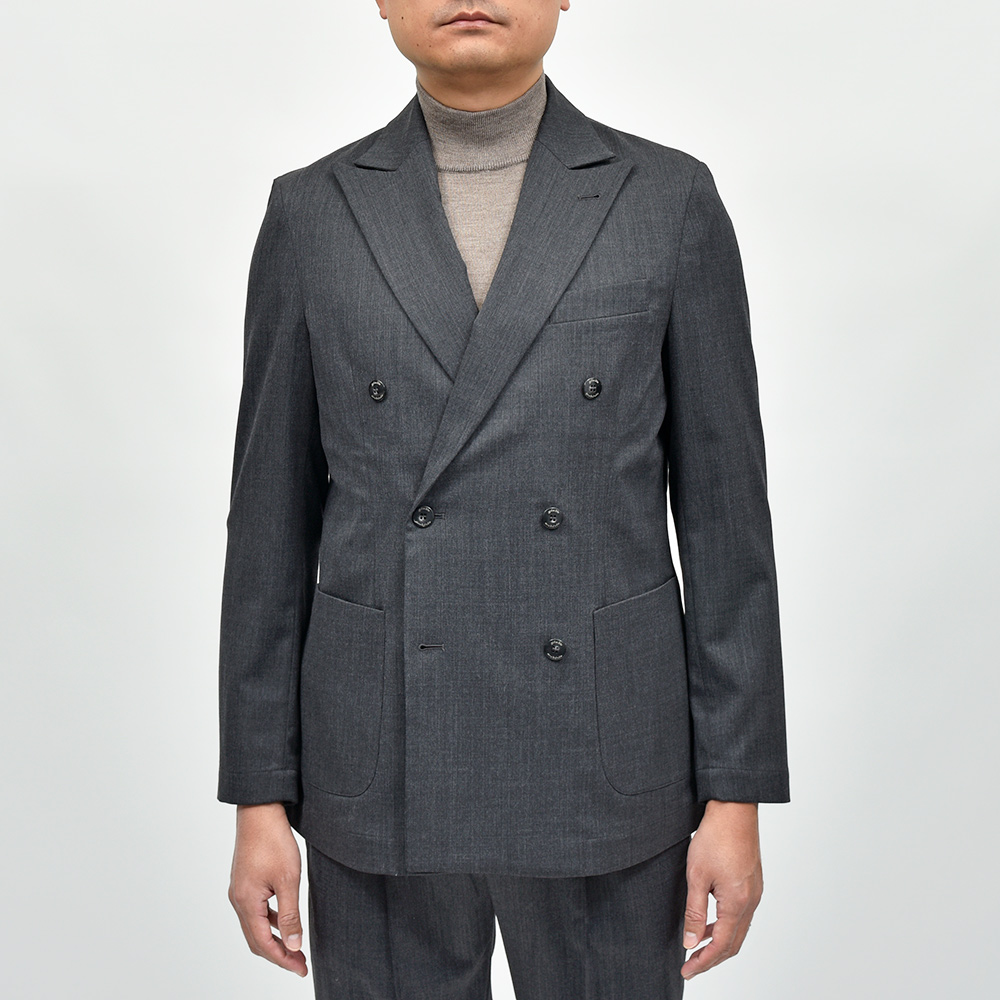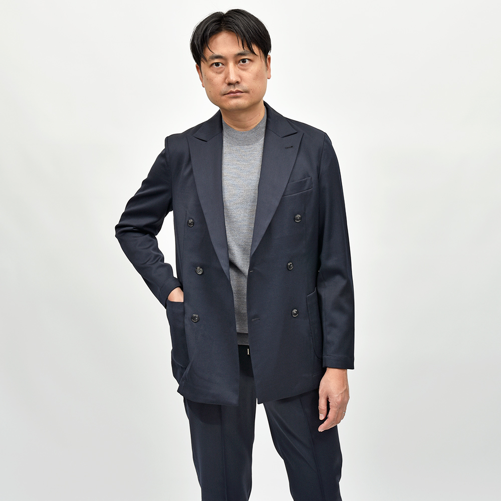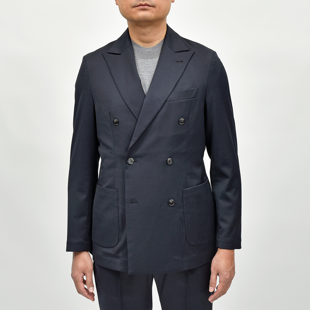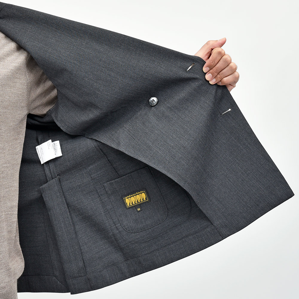 昨年登場したダブルブレストのモデル“PALAGIO(パラジオ)”。今シーズンはコレクションに入っていなかったモデルですが、ringだけで限定復活しました。人気のシングルジャケット同様に、アンコン仕立てで裏地も無く、袖は筒袖仕上げ。あくまでも気軽に羽織れるシャツジャケットの仕上がりとなっています。また、通常のスペックよりも着丈を少し短くすることでバランスを整えた別注仕様です。