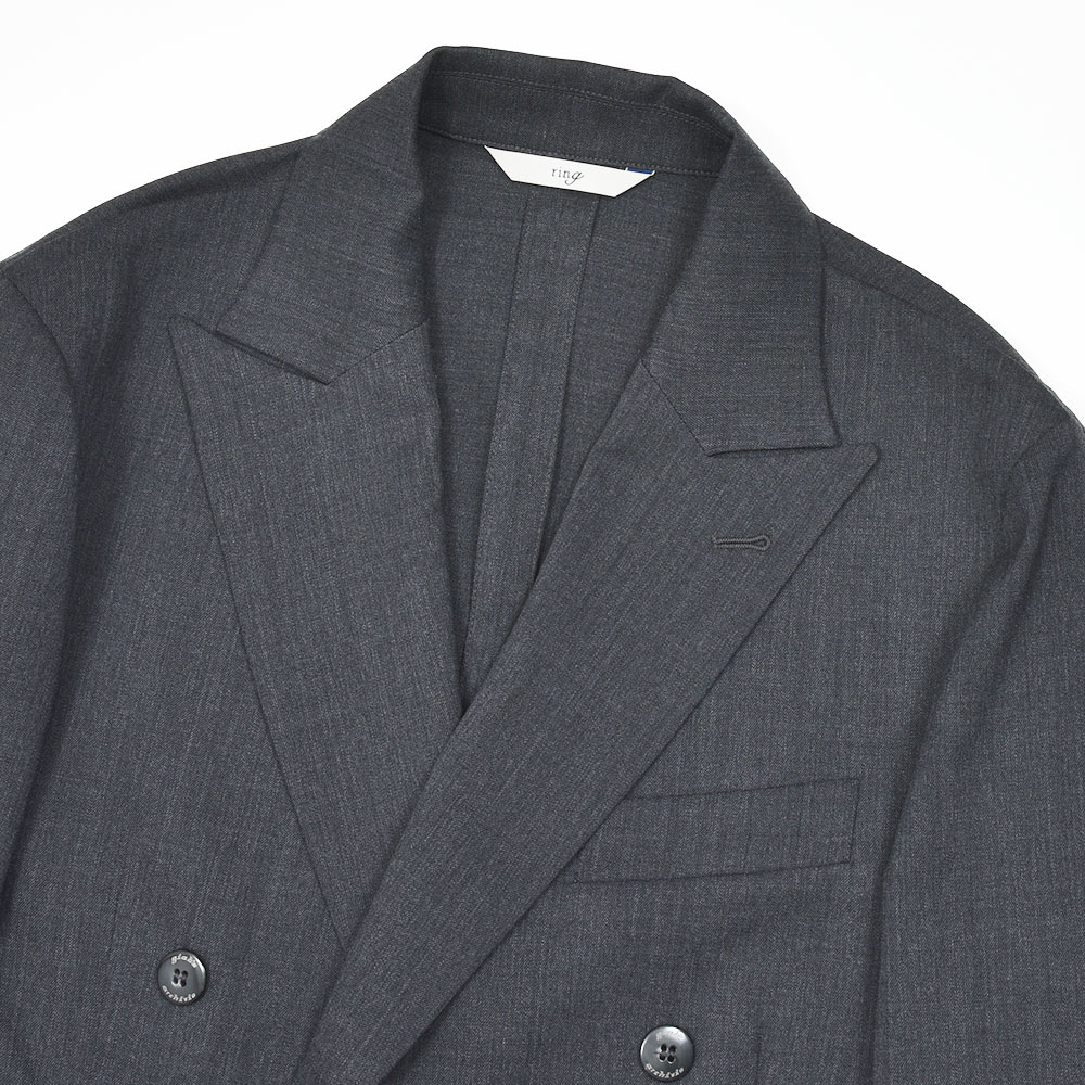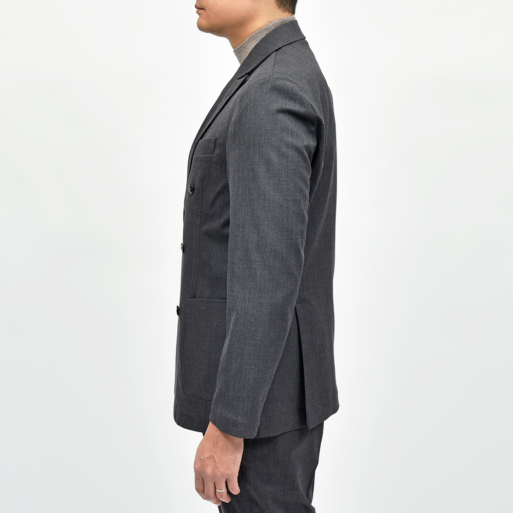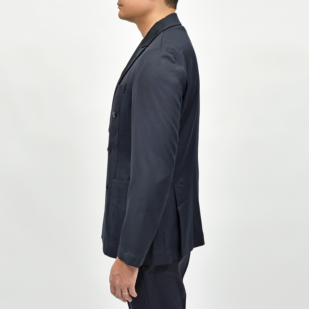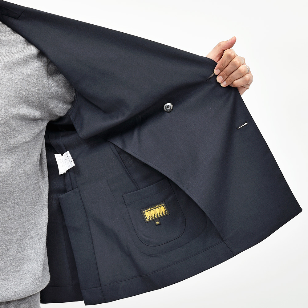 昨年登場したダブルブレストのモデル“PALAGIO(パラジオ)”。今シーズンはコレクションに入っていなかったモデルですが、ringだけで限定復活しました。人気のシングルジャケット同様に、アンコン仕立てで裏地も無く、袖は筒袖仕上げ。あくまでも気軽に羽織れるシャツジャケットの仕上がりとなっています。また、通常のスペックよりも着丈を少し短くすることでバランスを整えた別注仕様です。