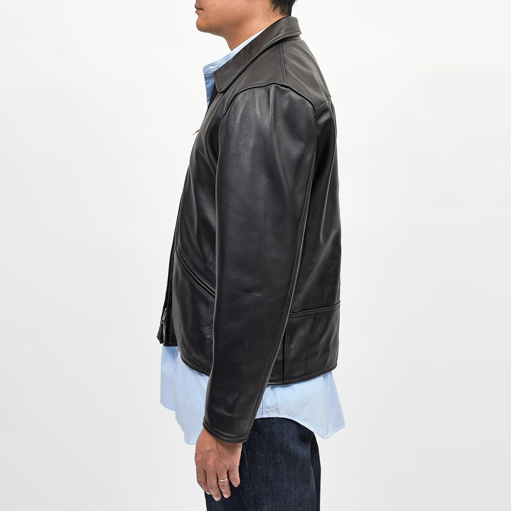 50〜60年代にイギリスの若者の間で流行した、センタージップタイプのレザージャケットモデル“CARTON ZIP JACKET”。他のライダースジャケットモデルよりもゆとりを持たせたパターン設計のため、リラックスしたシルエットがモダンな雰囲気を作り上げます。CARTON(カールトン)は、1922〜1940年にイギリスで製造されていたバイクにちなんで名付けられました。