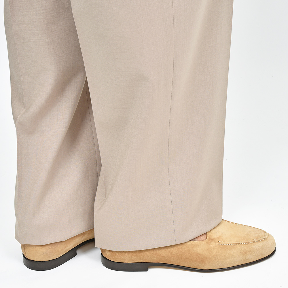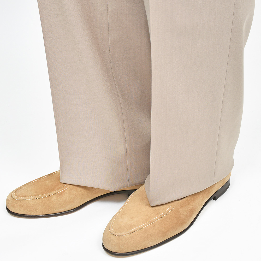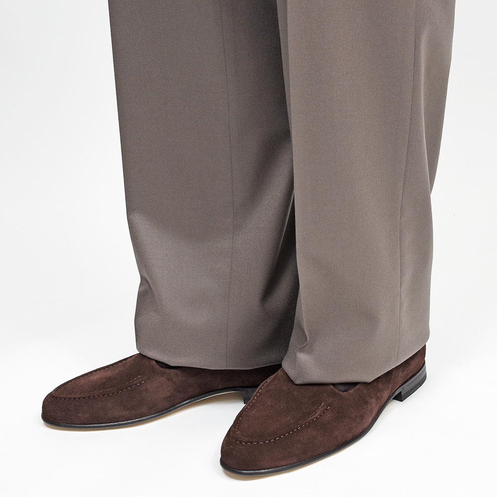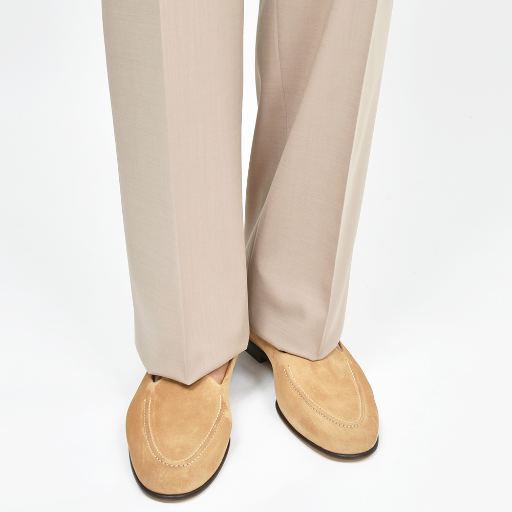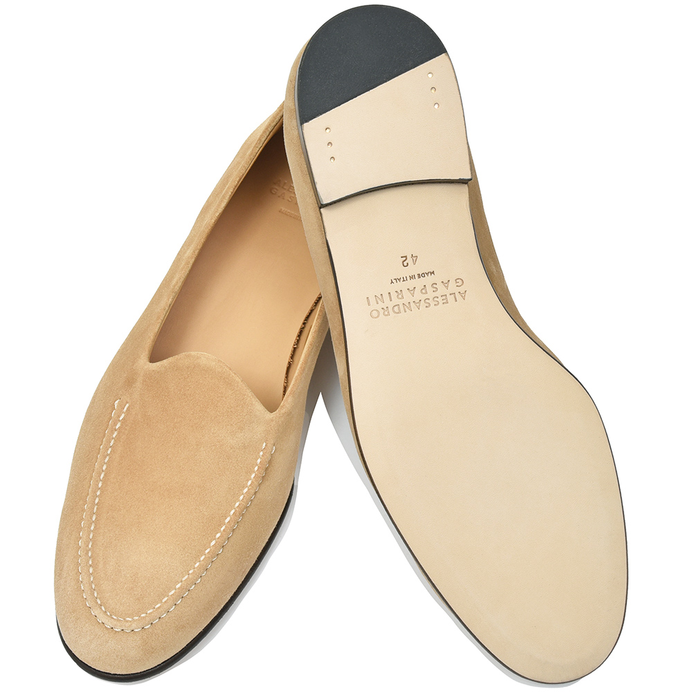 ソールはイタリア産の牛革。耐久性に優れた肩部分を使用し、様々な種類の木材や植物から抽出した天然成分を用いたベジタブルタンニングによって鞣されています。スエードモデルのソールは天然素材のまま特殊な技術で磨かれ、ヌバック効果を与えることでカジュアルな印象に仕上げています。