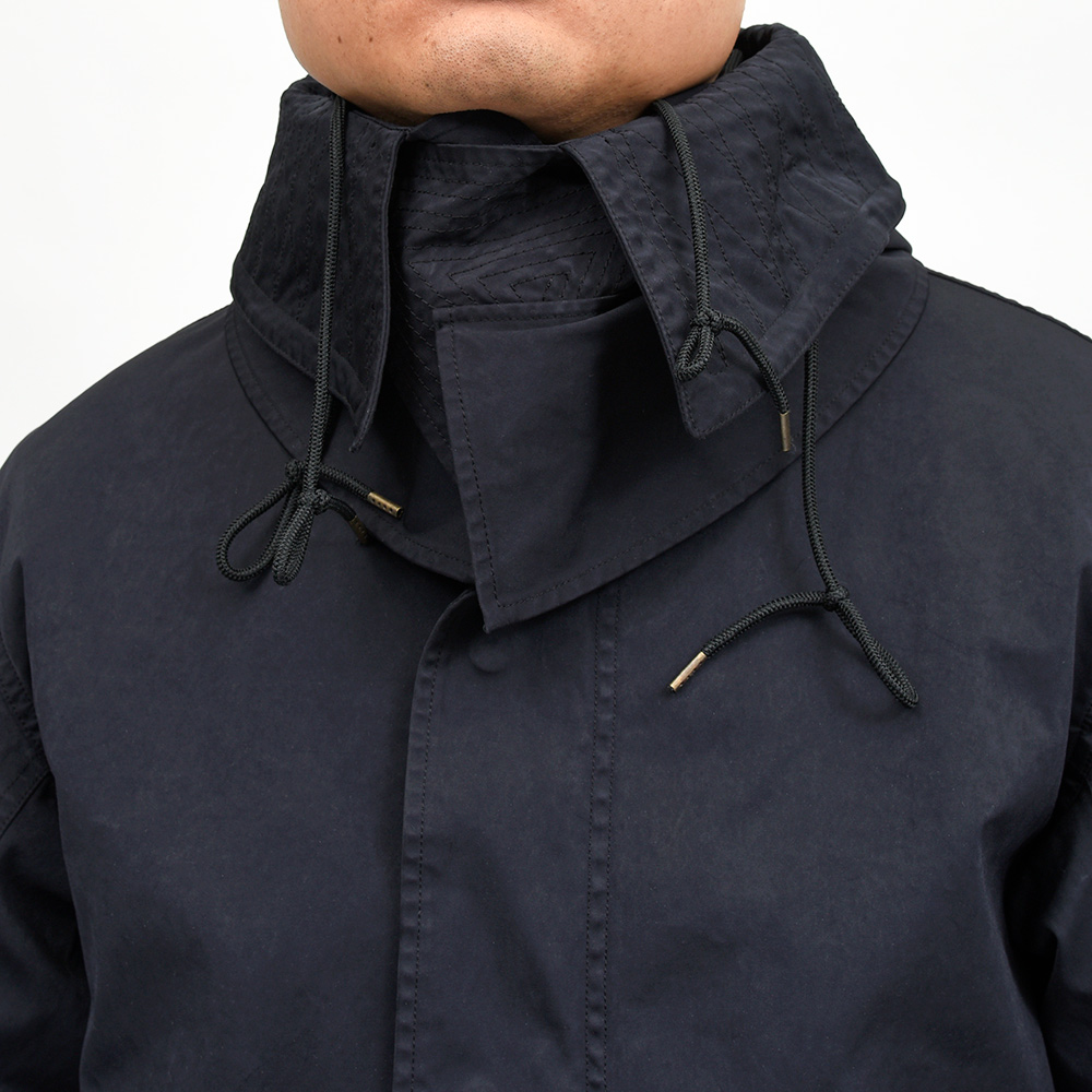 日本の生地メーカー小松精練と共同で開発されたこちらの高密度ナイロンベンタイルミリクロスは、寒さ・風・雨を完全にシャットアウトしながらも通気性のある、通称“OJJ(Original Japanese Jersey)”と呼ばれる超高機能素材。化学繊維でありながらも着込むほどに経年変化が起こり、柔らかく、シームにはパッカリングを起こし、水洗いも可能です。現在ではイタリアの陸軍に正式に採用される程。さらにこちらの生地をイタリアへ持ち込み、イタリアで唯一ナイロン・ポリエステルの混紡生地を製品染めできる工場で製品染めを行う拘りよう。これだけの手間暇をかけることで、正真正銘“一生モノ”と言える一着を作り上げていきます。