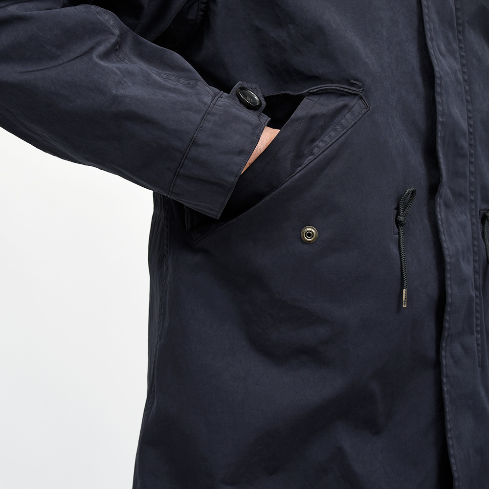モデル“PARKA”はポールハーヴェイが、ブランドを立ち上げるにあたって一番初めに構想したと言われる定番モデルになります。1950年代にアメリカ軍で採用されていたM51(通称モッズコート)。フードのワイヤーや、襟の補強ステッチといったディティールを忠実に再現しています。フードは着脱可能となっており、また別売りのダウンライナーを取り付けることで冬でも着用可能な仕様となっています。