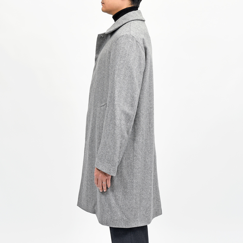 MACKINTOSHを代表するモデルの“DUNKELD(ダンケルド)”。ミニマルなデザインの美しいシルエットのコートは、立体的なパターン構造によって着心地が担保されています。