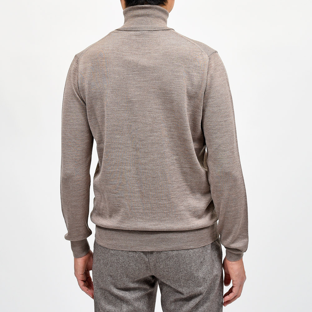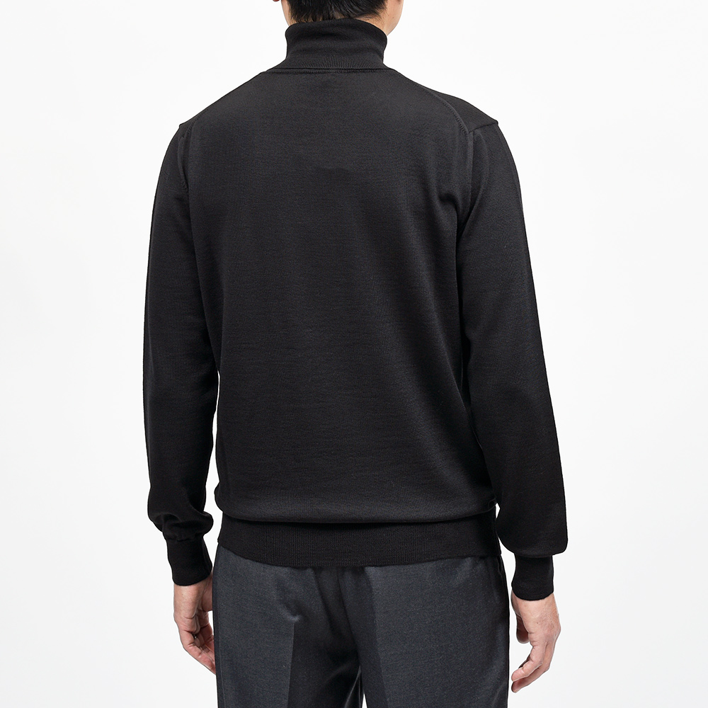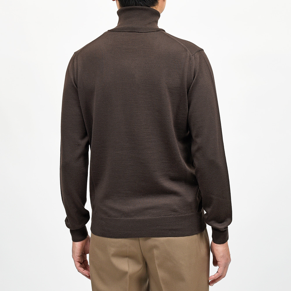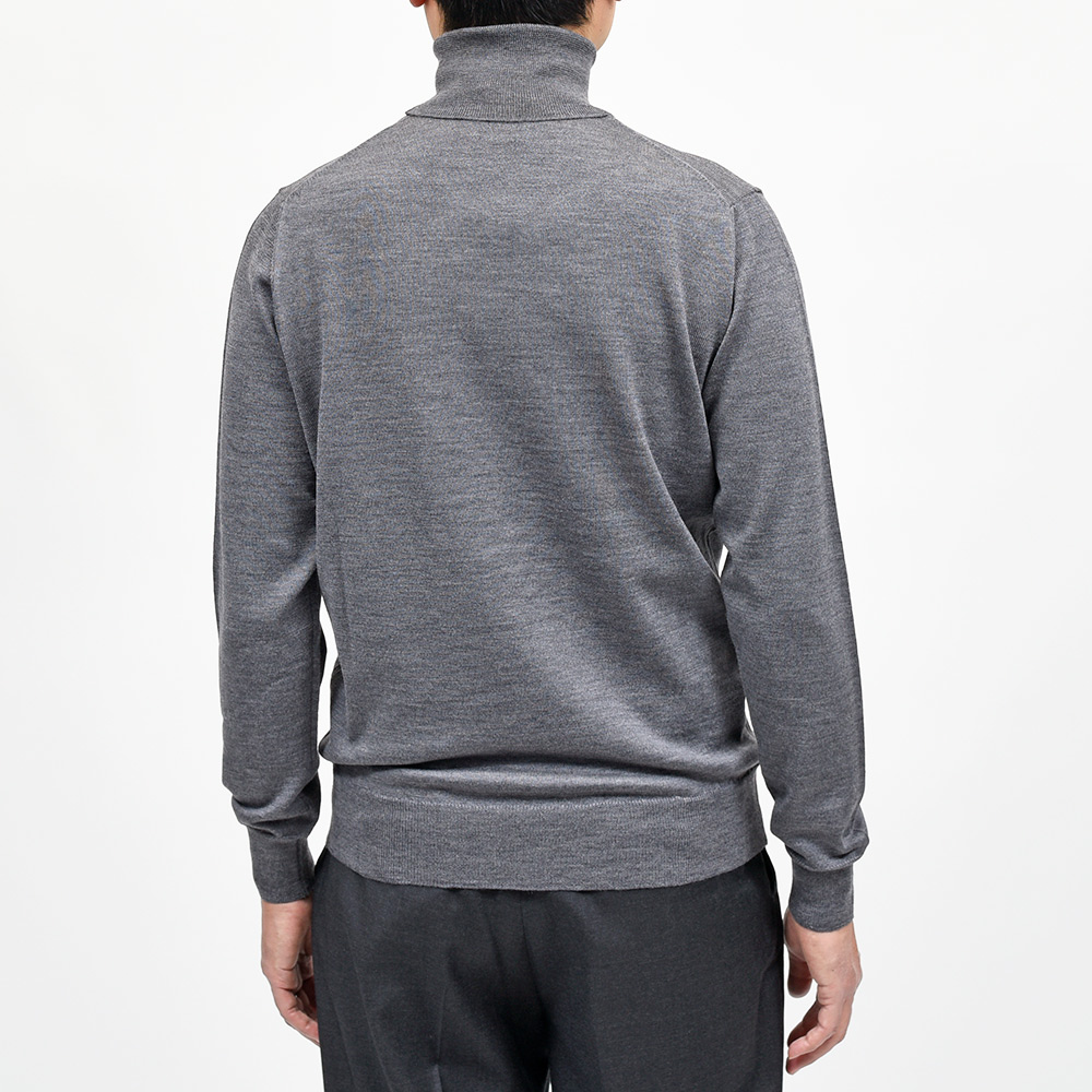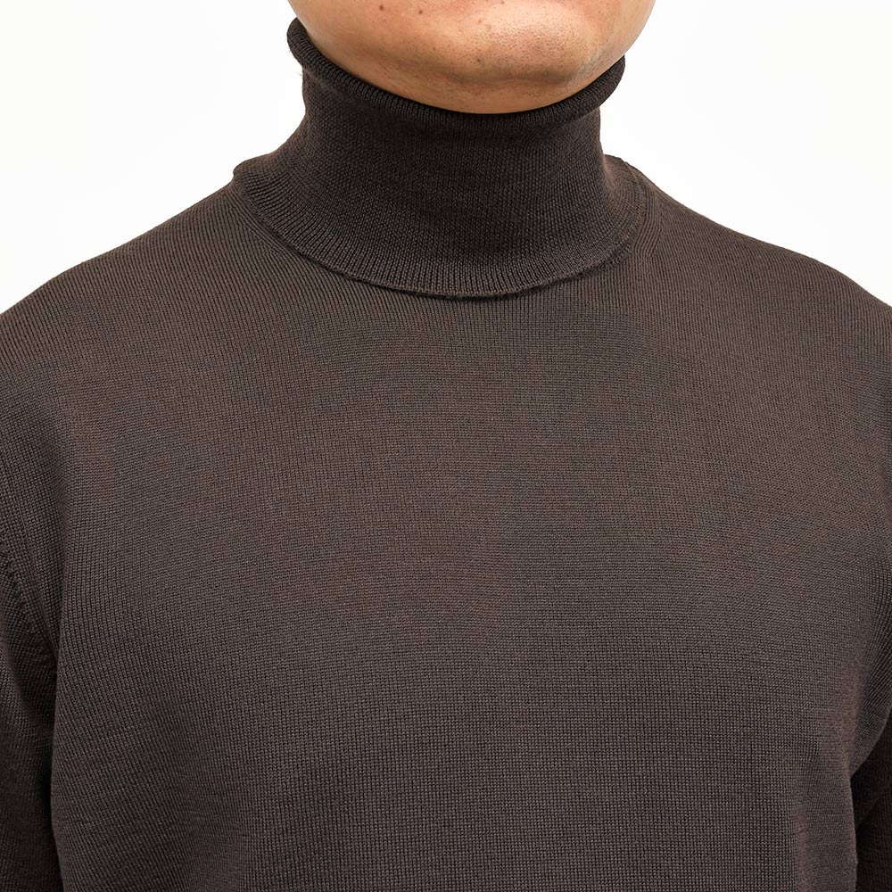 美しい艶感と非常に滑らかなタッチが特徴のエクストラファインメリノウールを使用した12ゲージニット。morganoでは定番の一つで、ロロピアーナ社が母体となる生地メーカー“Tollengo 1900(トレーニョ)”の糸を使い、ドイツ製の編み機で仕立てられています。やや肉感のあるハイゲージは、インナーは勿論、サイズアップして少しゆとりを持って一枚で着ても映える一着となっています。