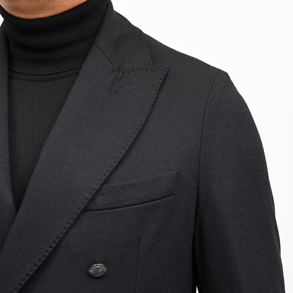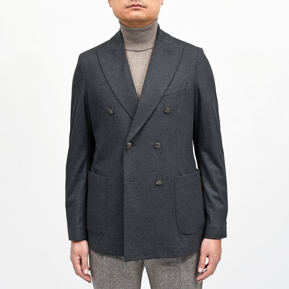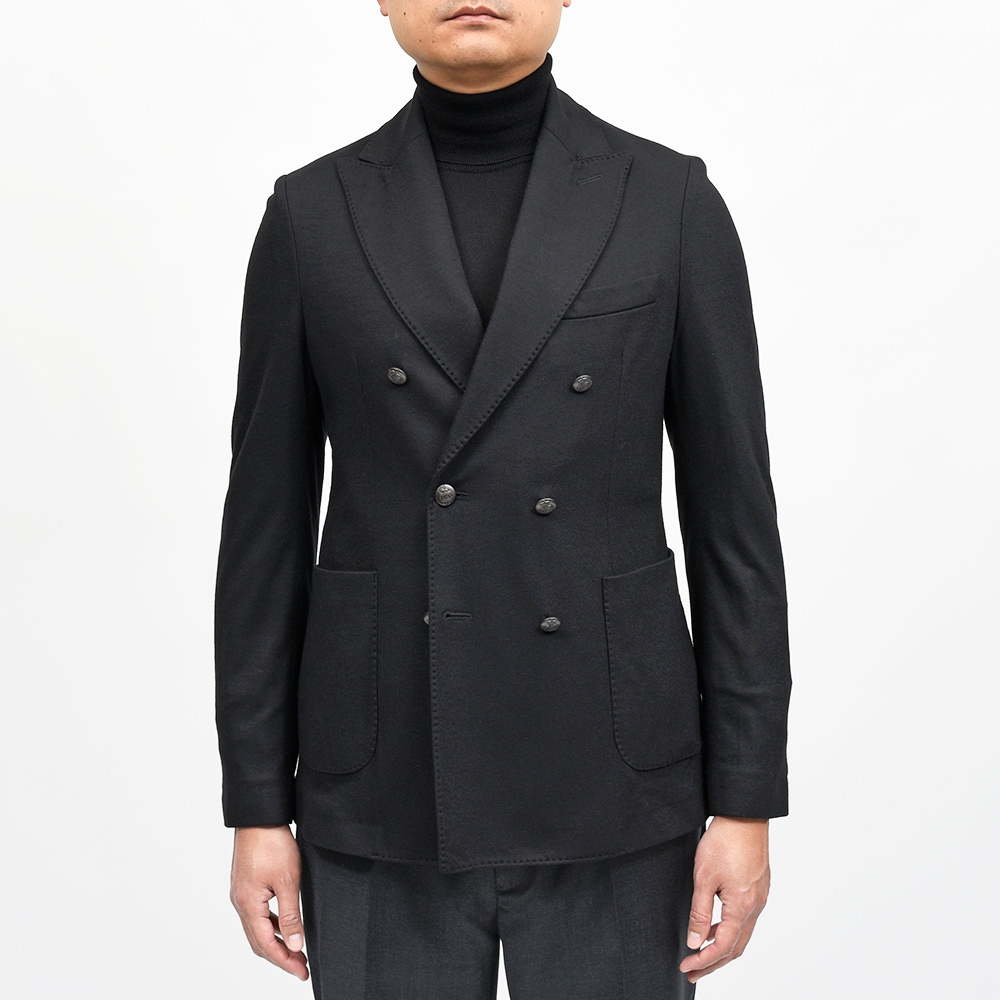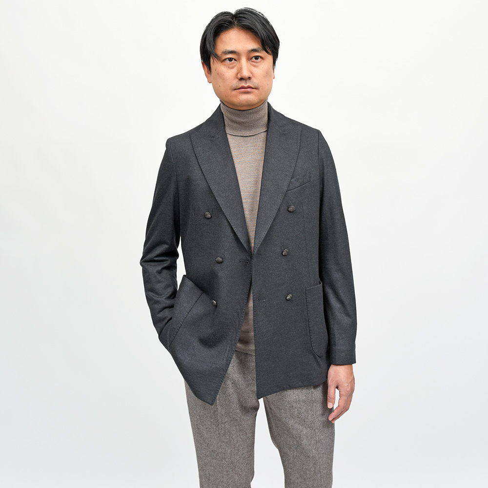 モデルは程よくタイトなシルエットに、やや狭めのダブルブレストの6つメタルボタン仕様。モダンなカジュアルジャケットとして非常に有能な働きをしてくれます。
