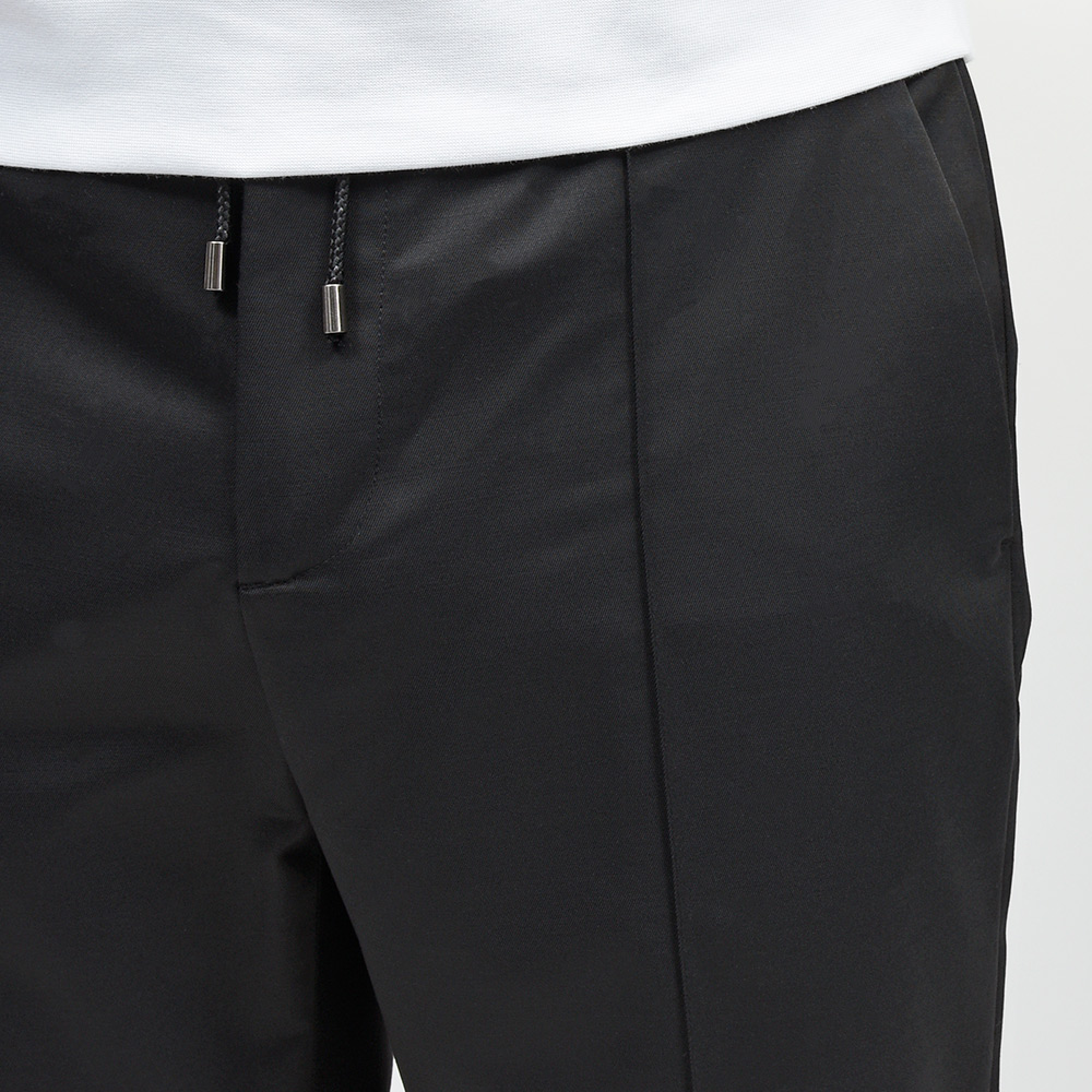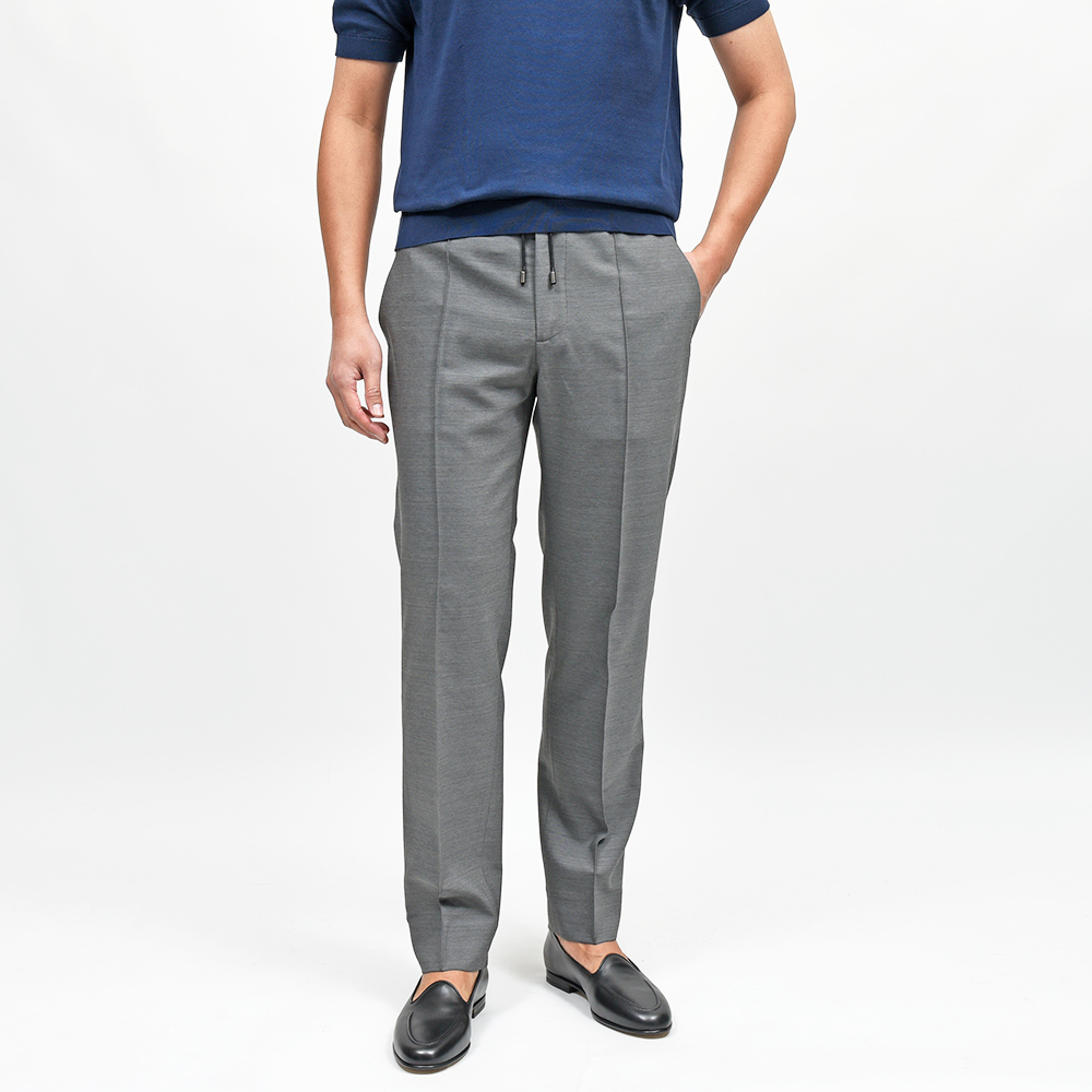 MASACCIO/3GはMASACCIOの特徴である永久クリースや、内側に隠せるドローコードなどのディティールを継承しつつも、現代的なフィッティングに再解釈したモデルになります。こちらの別注モデルでは、通常ウエストのサイドのみに施されたゴムを、後半身がシャーリング仕様となりより高い伸縮性を持たせています。