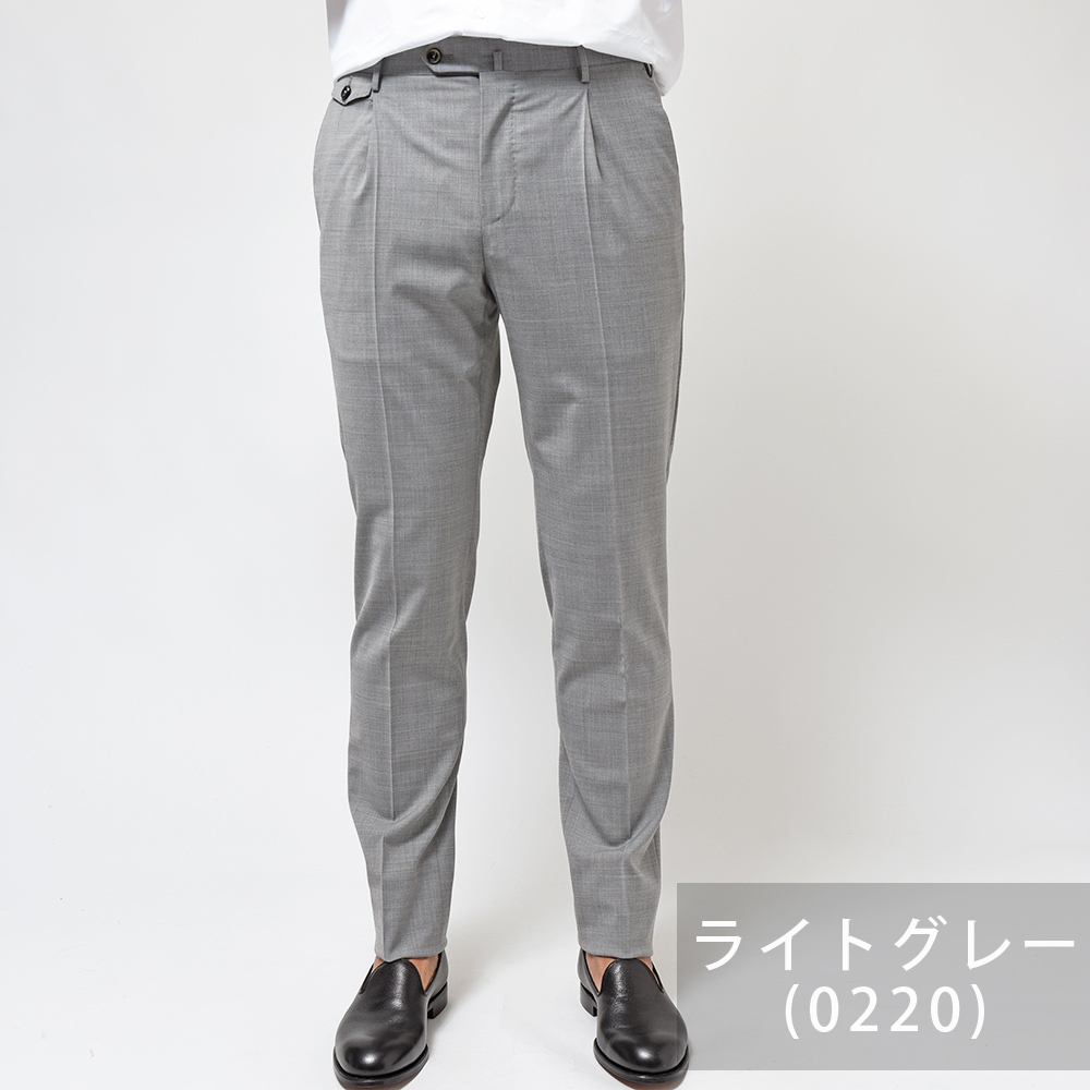 PT TORINOには欠かせないFITとなった“GENTLEMAN FIT”は、プリーツが入り、少し股上が深く程よいゆとりの腰回り。テーパードを効かせスッキリとした裾幅は、モダンな香りが漂うニュークラシックな佇まいです。