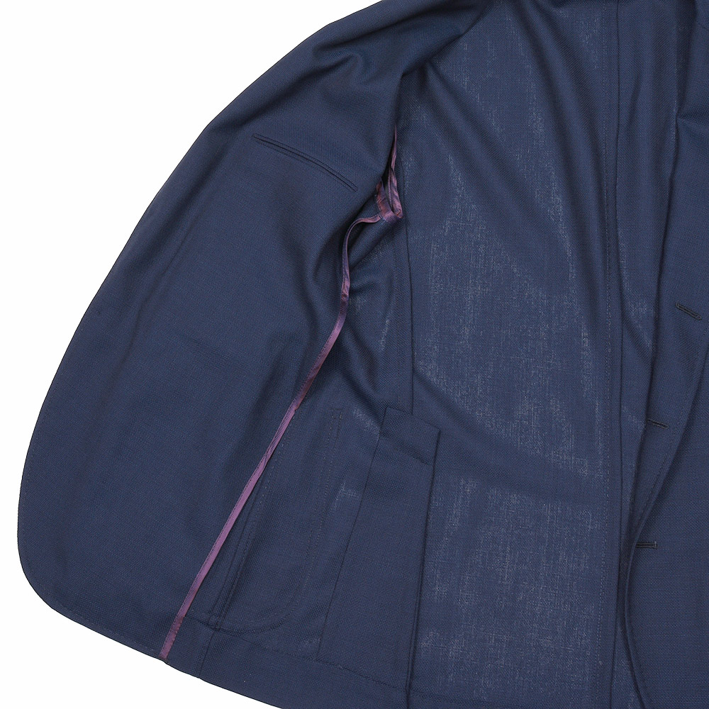 2パッチポケット、サイドベンツ、ラペル巾8.5cm、袖アンフィニッシュド(本切羽・開き見せなどの釦付け修理が必要)です。