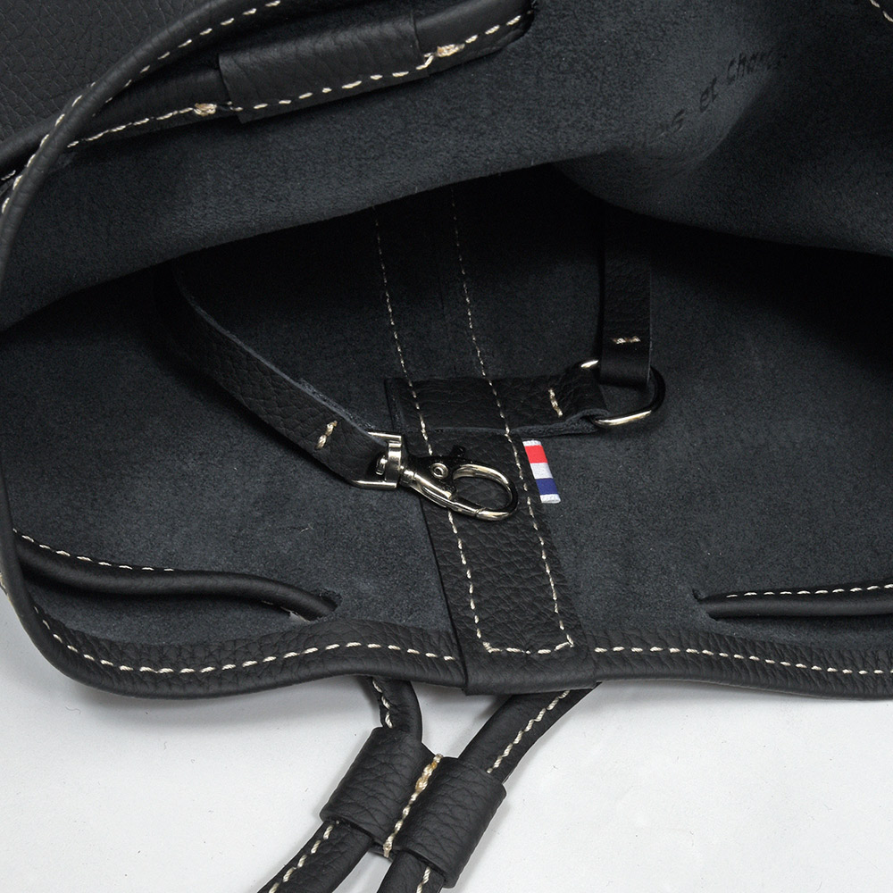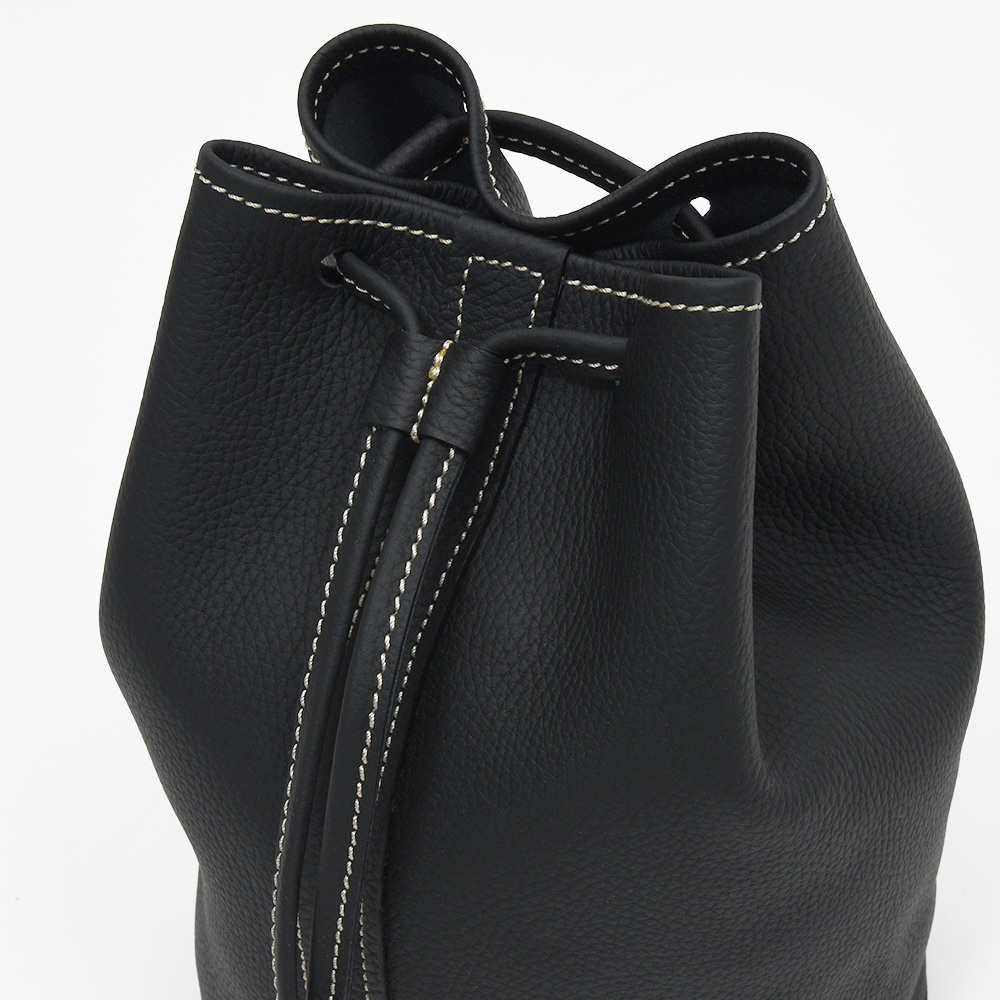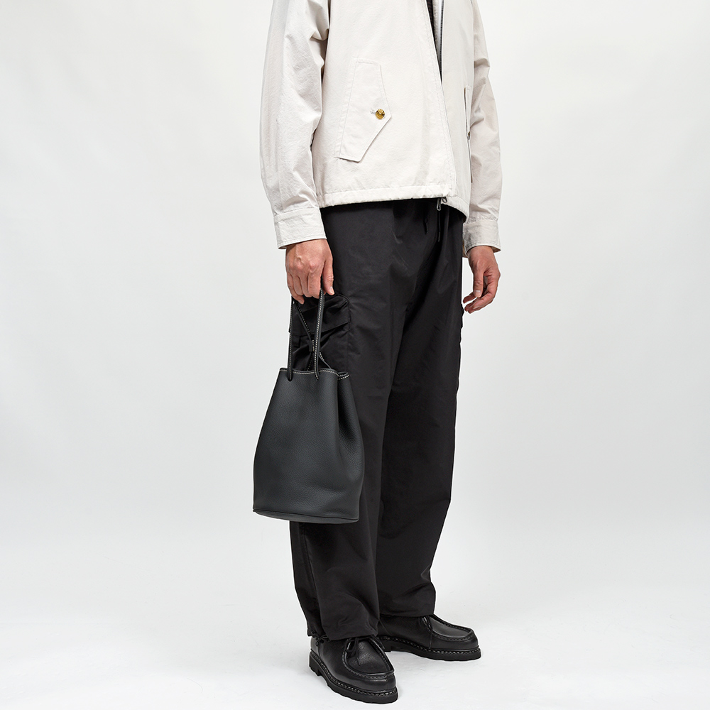 普段使いに丁度良いサイズ感の縦長の巾着型バッグ“Escala”。スマートフォンや財布、ペットボトルまで入る高い収納力は、様々なシーンでの使用が想像できます。また、上質な素材使いによってカジュアルは勿論のこと、ドレススタイルにも対応できる非常に便利な一品です。