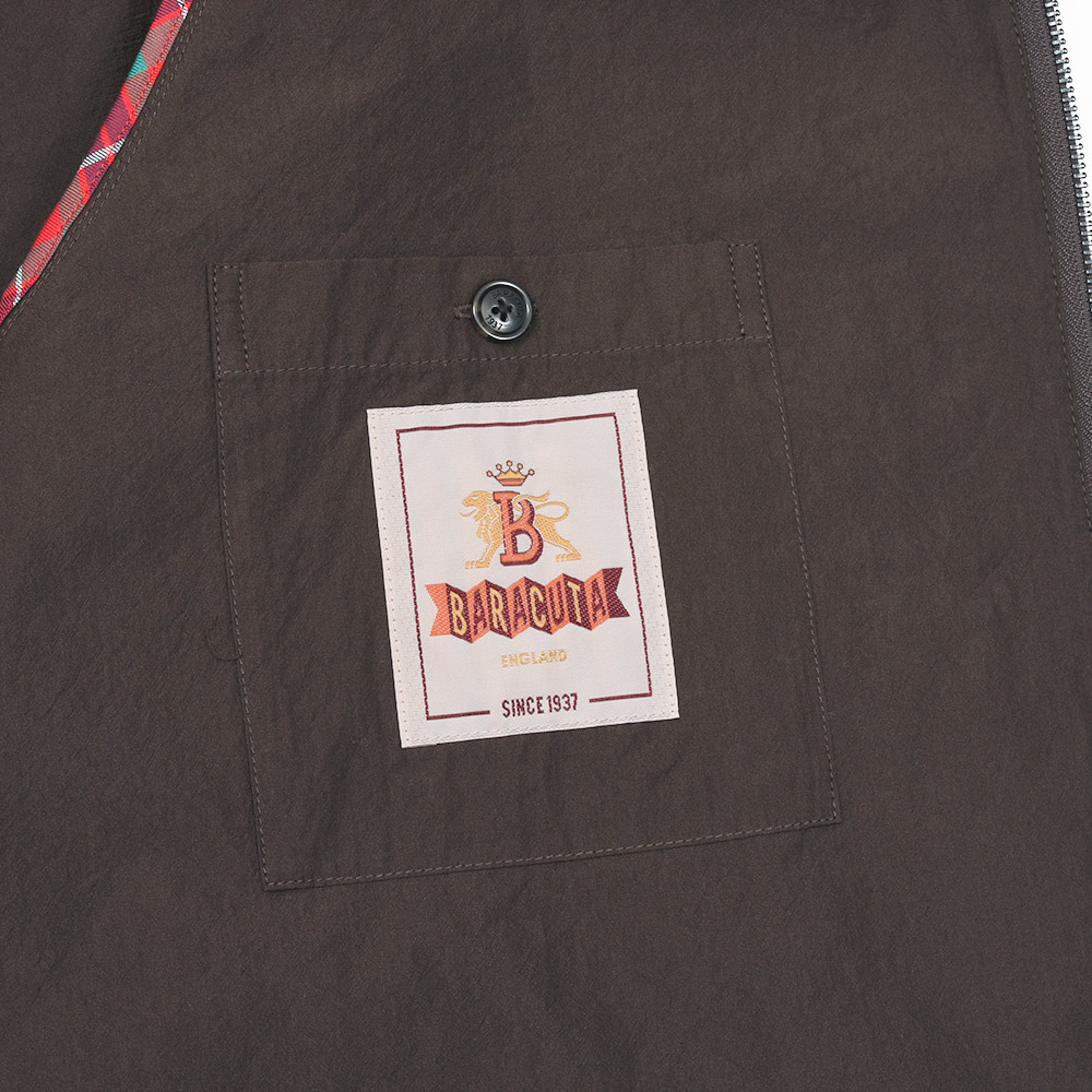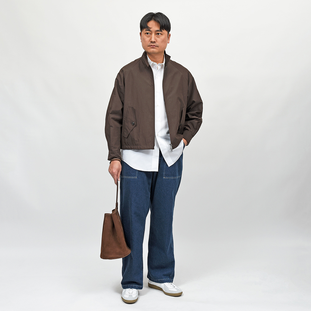 BARACUTAを代表するモデル“G9”の数年後に誕生したセカンドアイコンとも言えるモデルがこちらの“G4”です。G9に比べ、やや着丈が長く、袖口と裾がリブ仕様ではないためフワッと広がるシルエットが特徴的ですが、裾にはドローコードがあるため絞ることで違った印象を作り上げてくれます。また、ドッグイヤーカラーやラグランスリーブ、アンブレラヨークといったG9のアイコニックなディティールは継承されており、一目でBARACUTAであるという存在感を残しています。