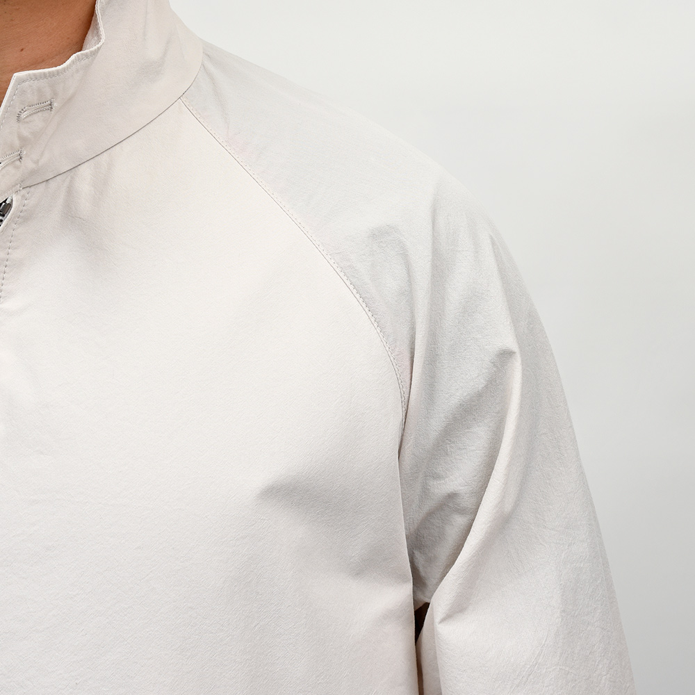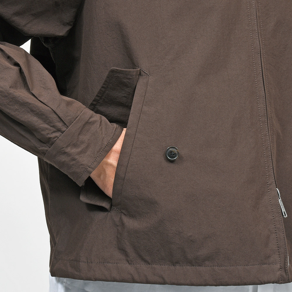 裏地のない軽やかな仕立てに、ハリのある軽やかなタッチの生地を使用した、シャツのような感覚で着られるブルゾンです。