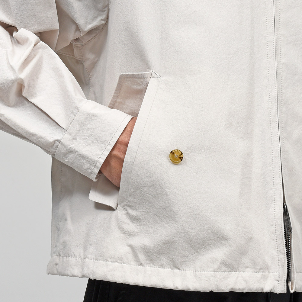 ファブリックはコットン×ナイロン素材のライトウエイトポプリン。生地に若干凹凸があることで表情を持たせつつも、ポプリンのようにハリのある何とも言えないタッチが非常に着心地の良い一品となっています。
