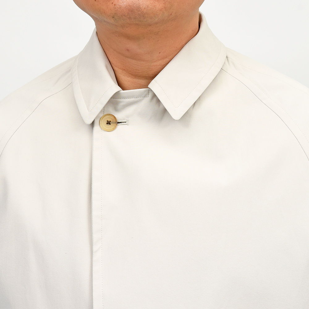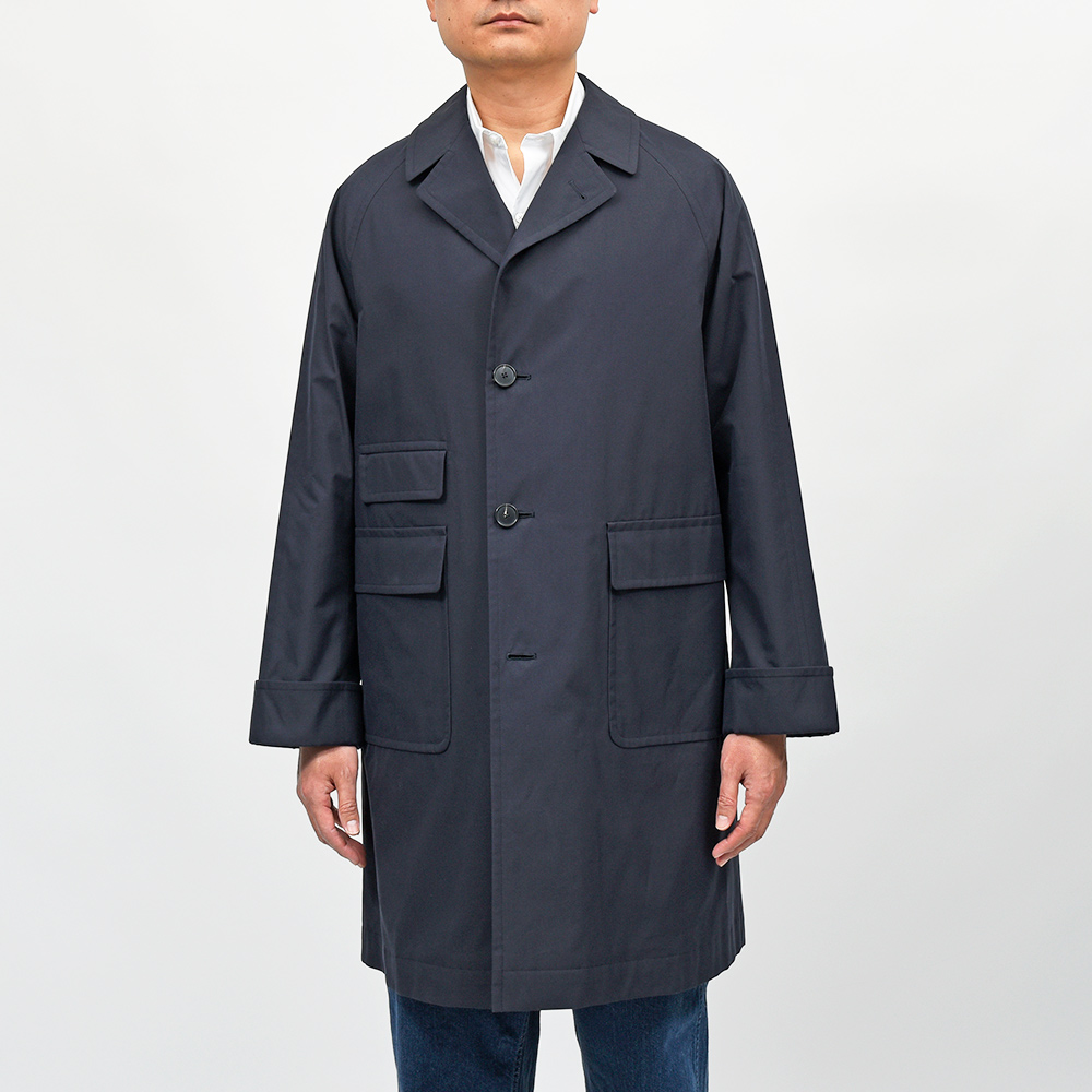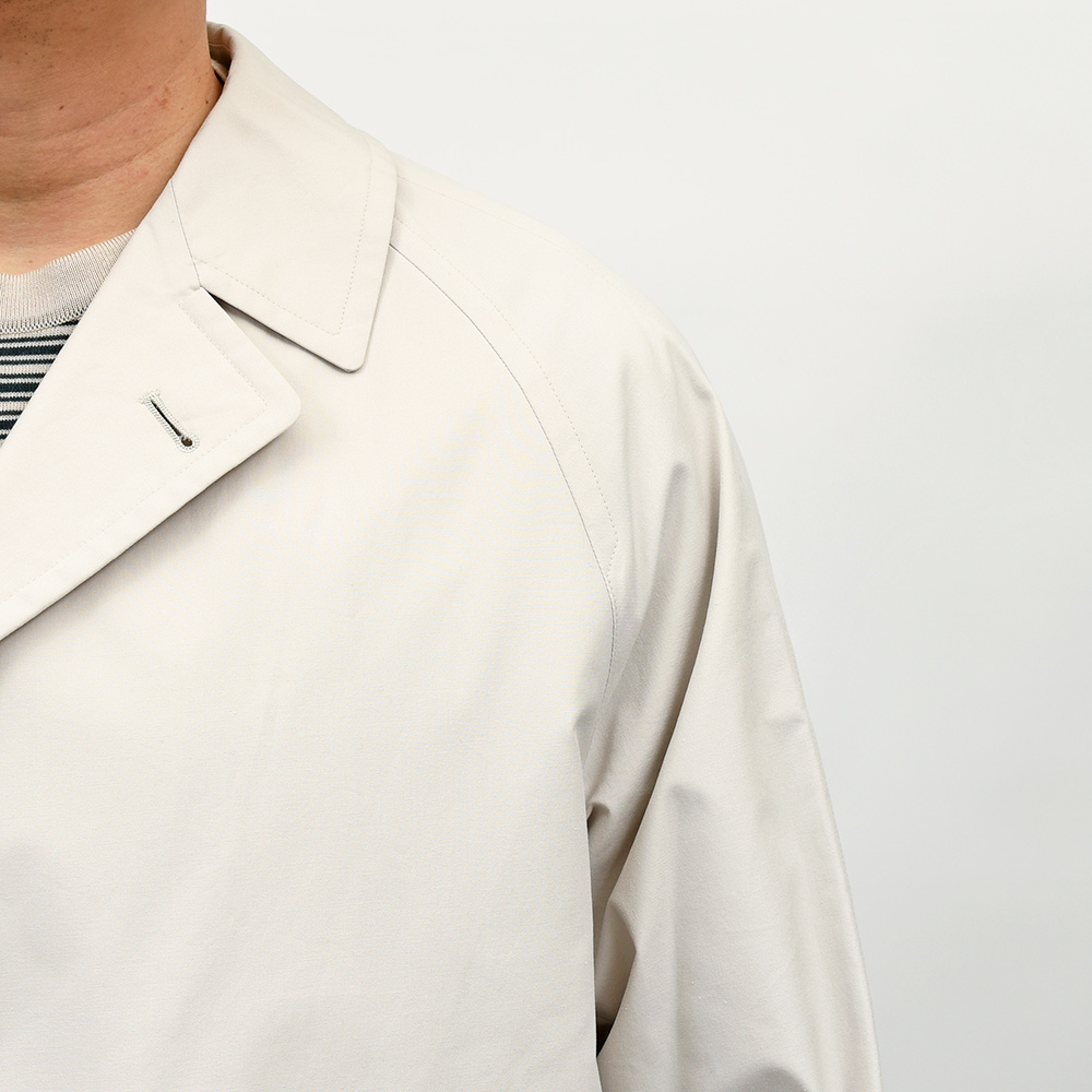 フランスの建築家ル・コルビジュエの1927年のポートレートにインスピレーションを得たモデル“CORB”。コンパクトなラグランスリーブは肩周りをスッキリと見せ、少し広めの幅のフラップポケット、袖口部分にはターンナップカフスが使用されています。