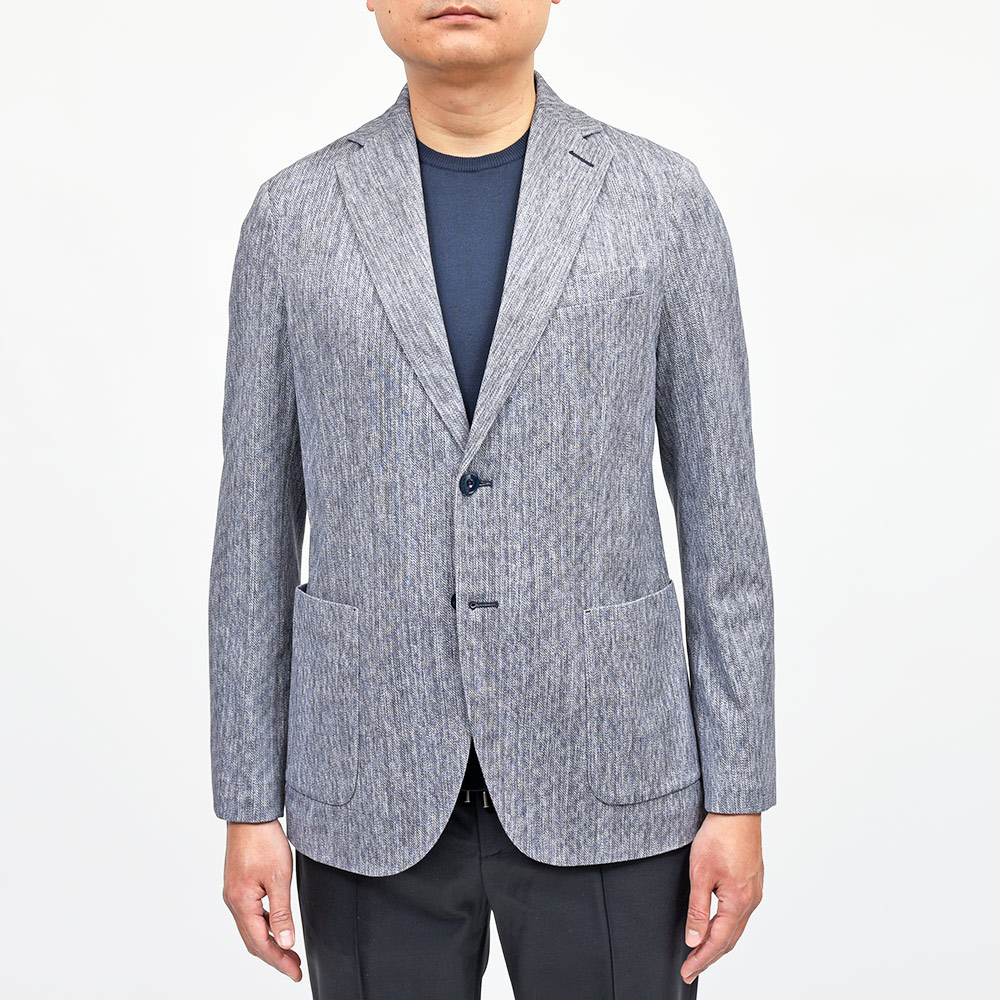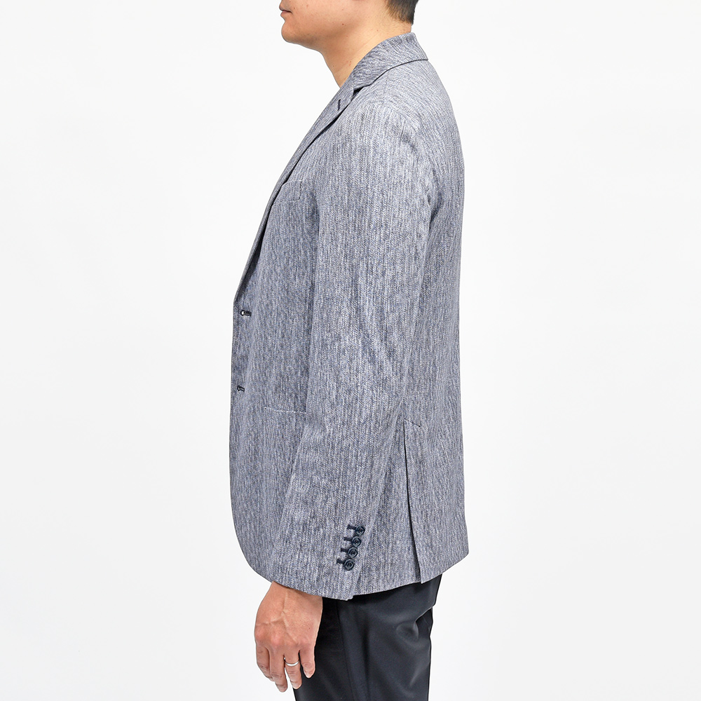 程よくタイトなシルエットに、フロントの2つボタン仕様がカジュアルなジャケッパンスタイルや、セットアップとして非常に有能な働きをしてくれる定番のモデルになります。