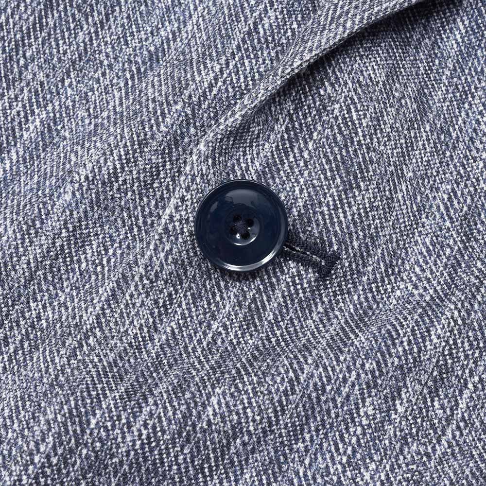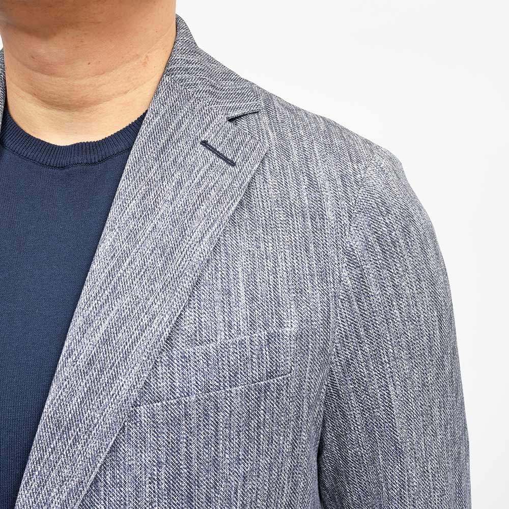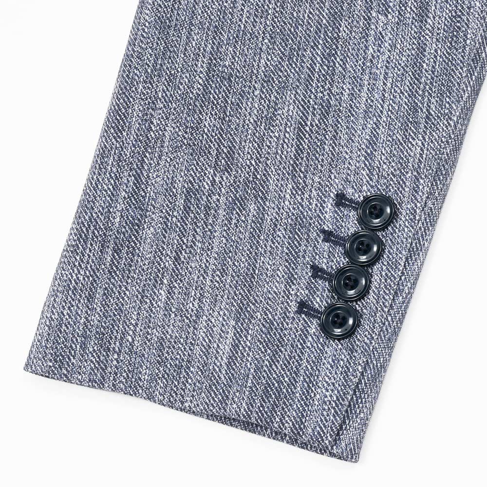 パッチポケット、サイドベンツ、ラペル巾8cm、袖は開き見せ4つボタン並び(袖詰めは肩からになります)です。