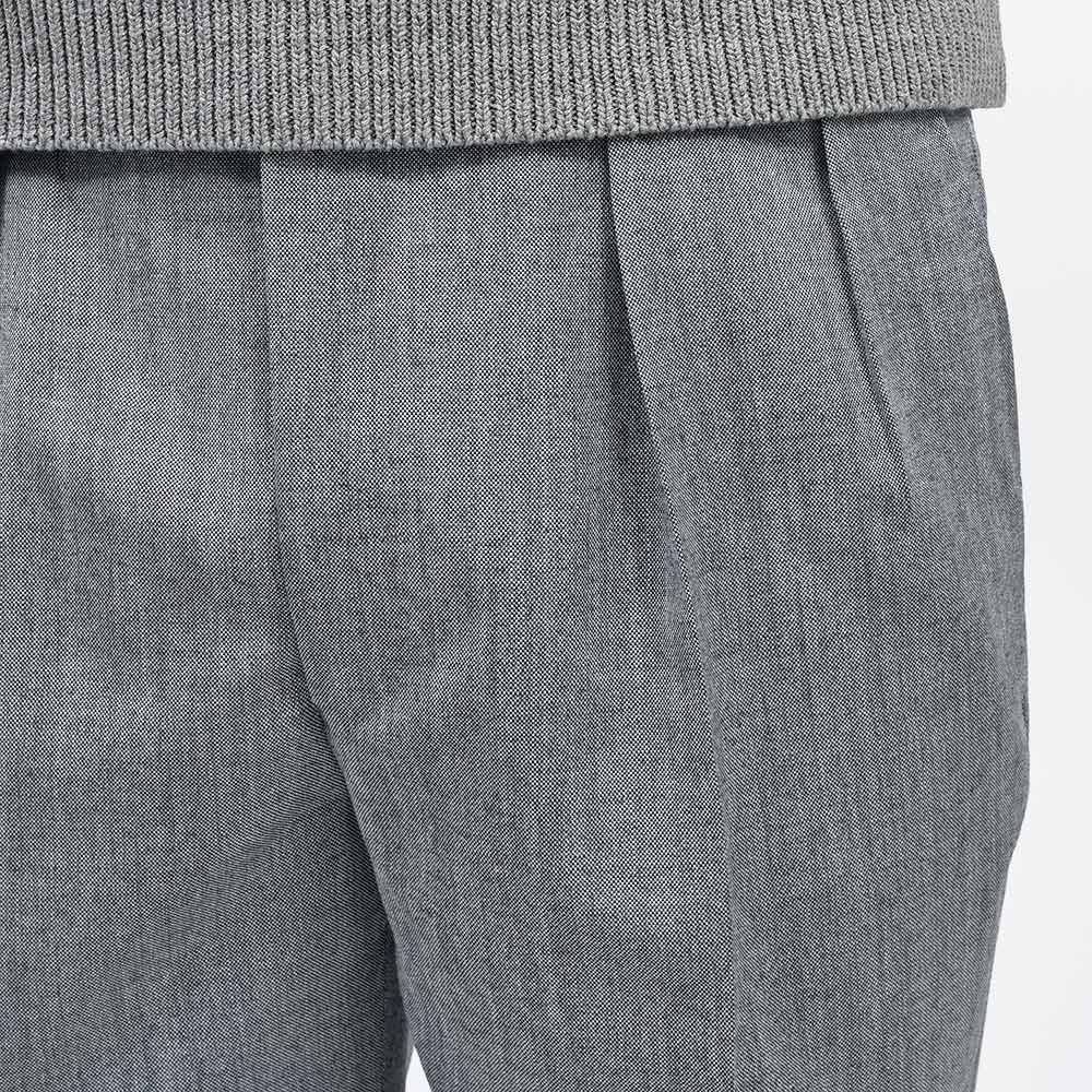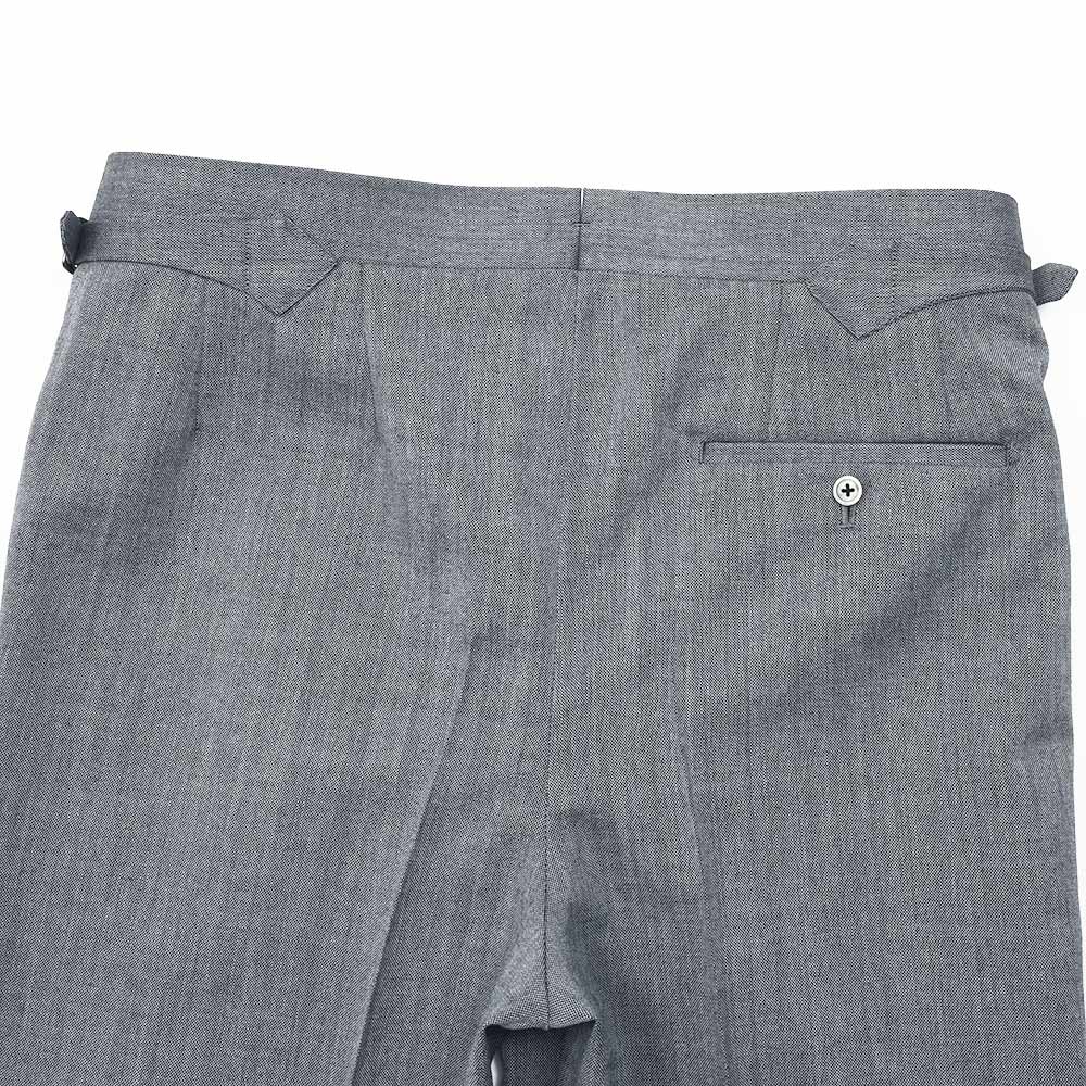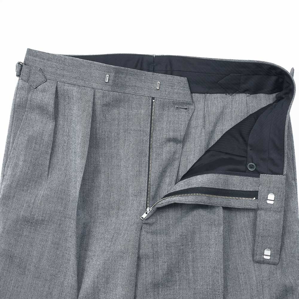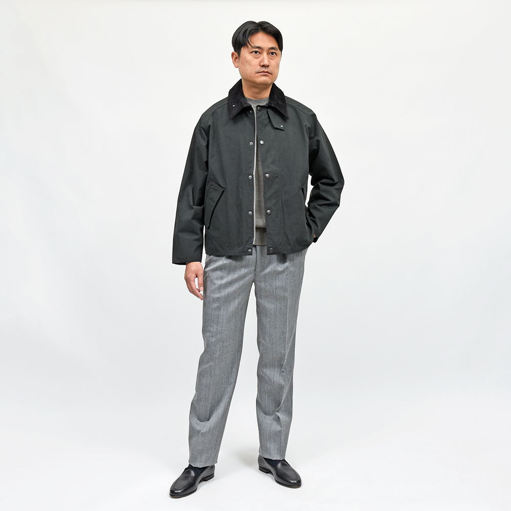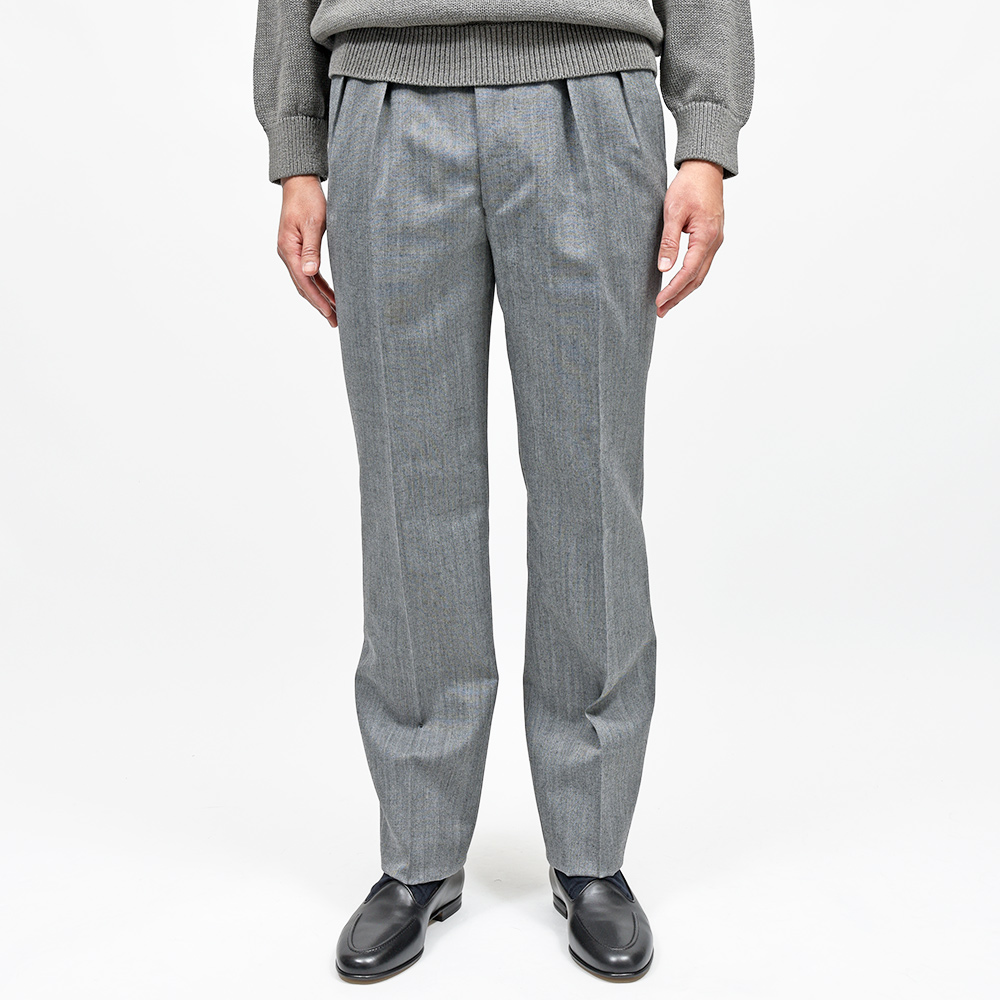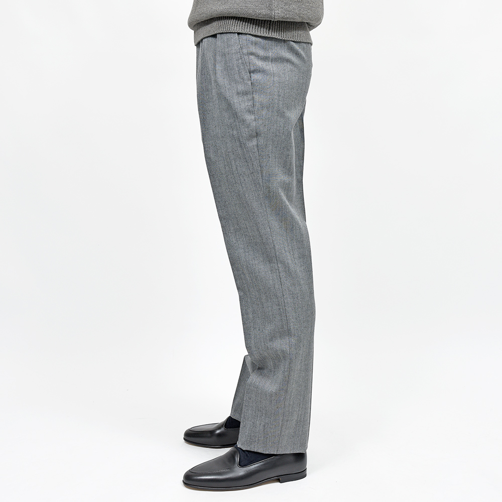 基本とも言えるグレースラックスですが、ブリティッシュなディティールがスタイリングに仄かな香りをプラスしてくれます。