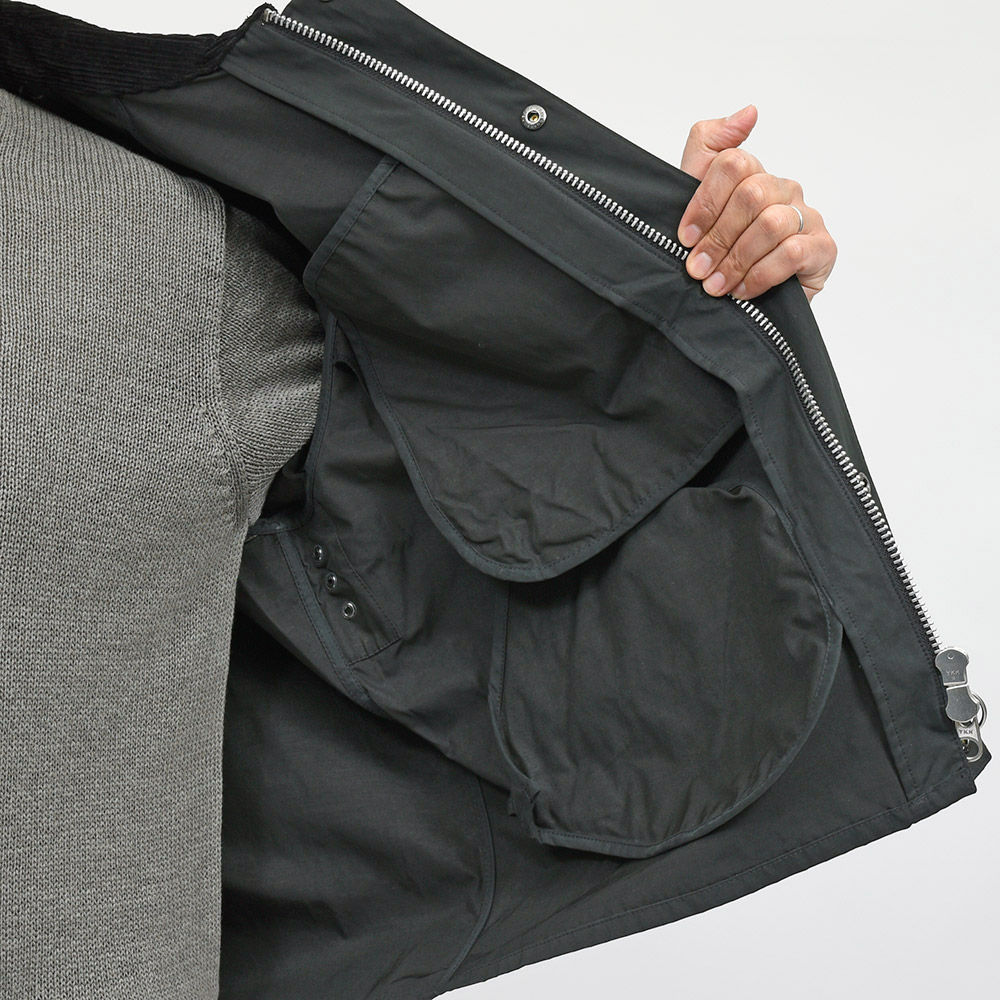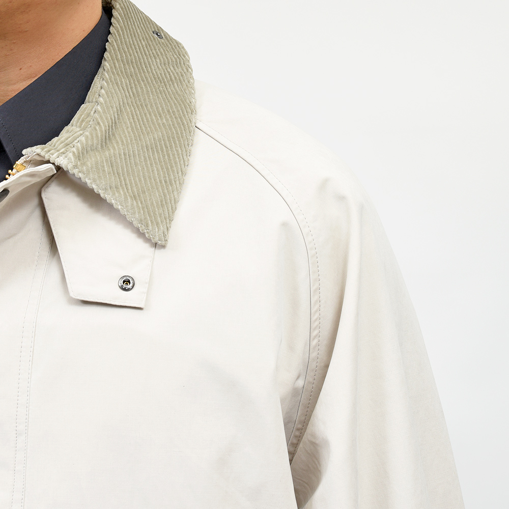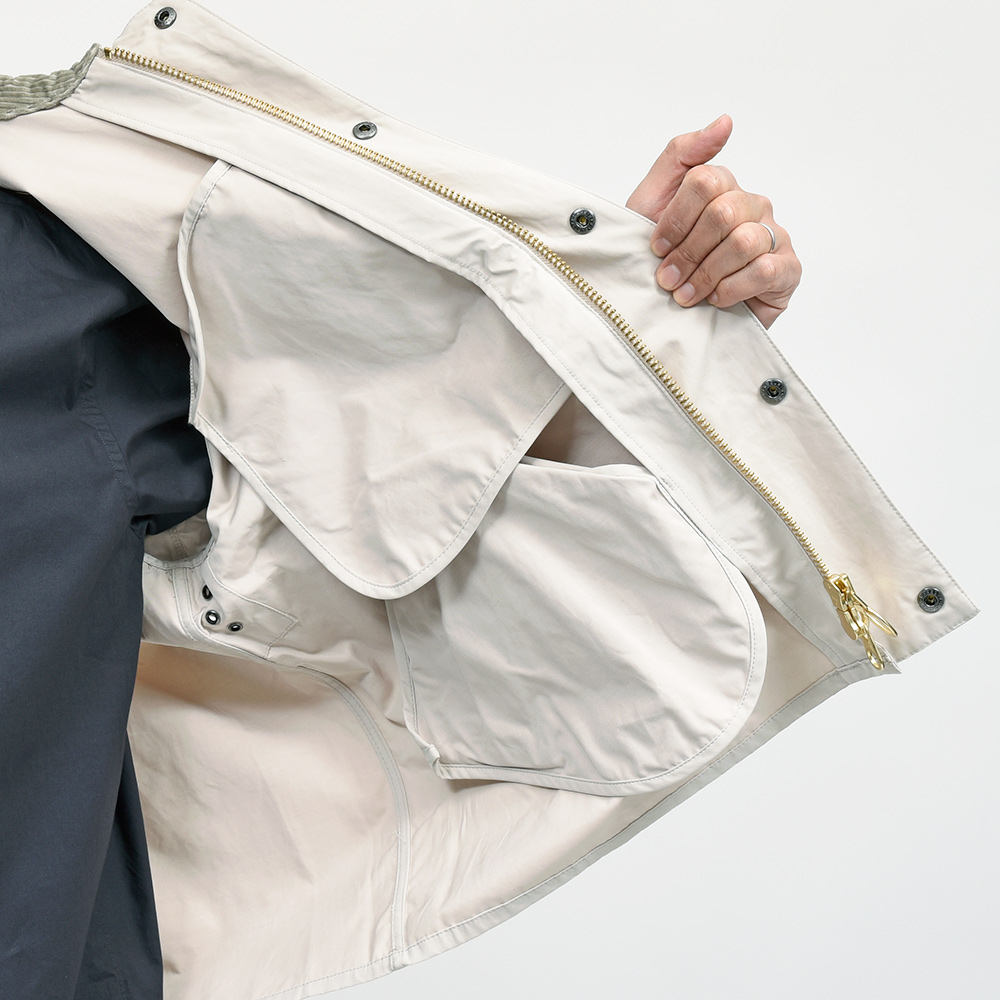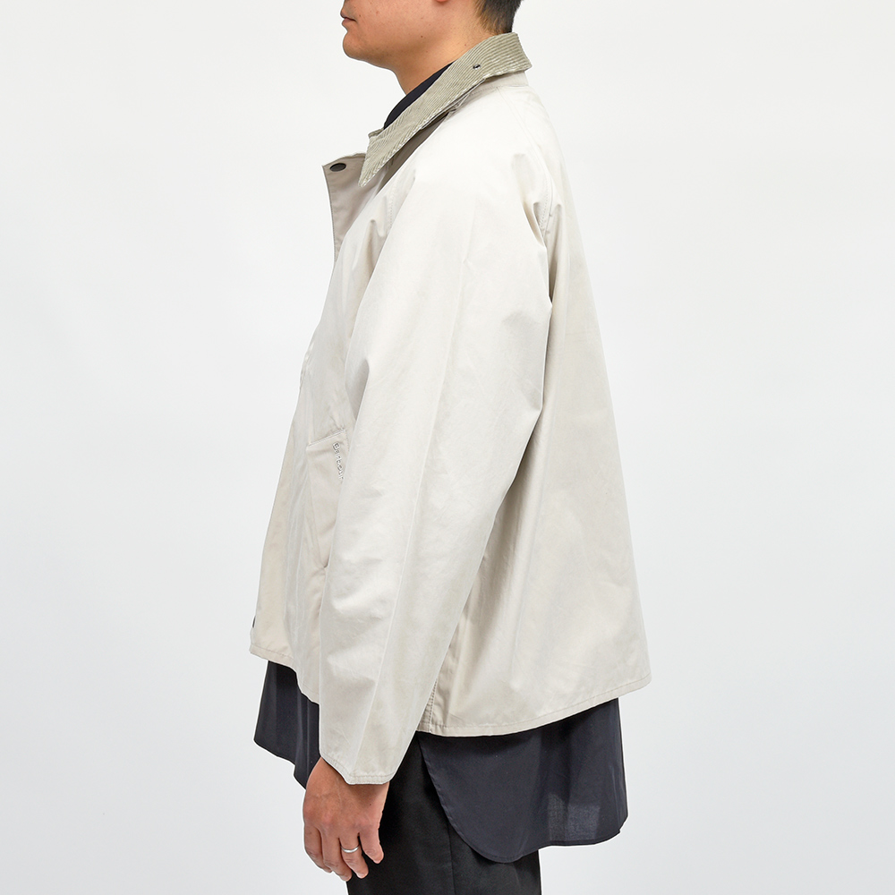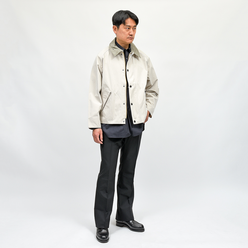 シーズンレスで着用できるピーチスキンを使用した、ノンワックスシリーズ。きめ細やかなコットン×ポリエステル×ナイロン生地を起毛させ、短く刈り揃えることで文字通り桃の皮の表面のような、柔らかく滑らかな高級感のあるタッチが特徴のファブリックになります。