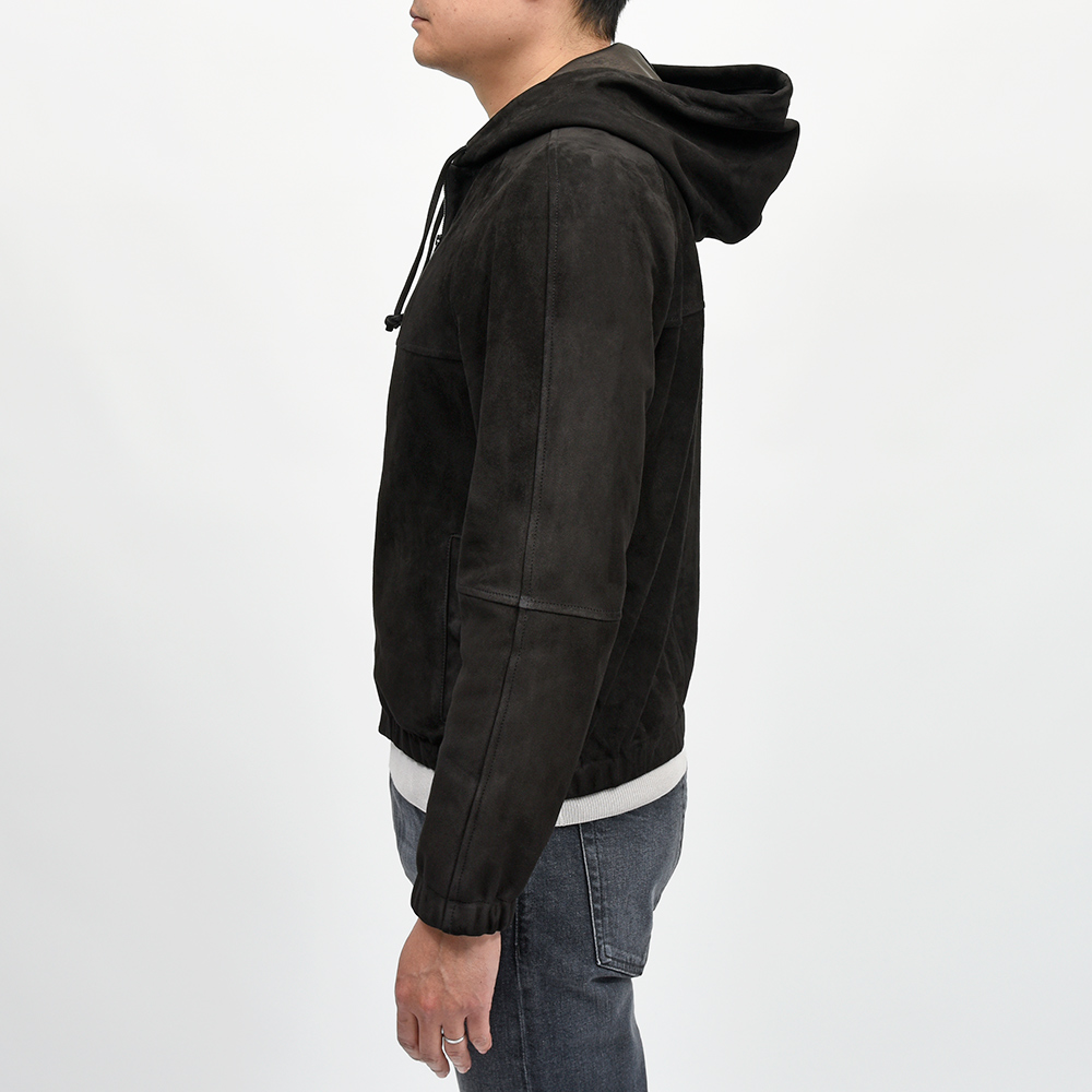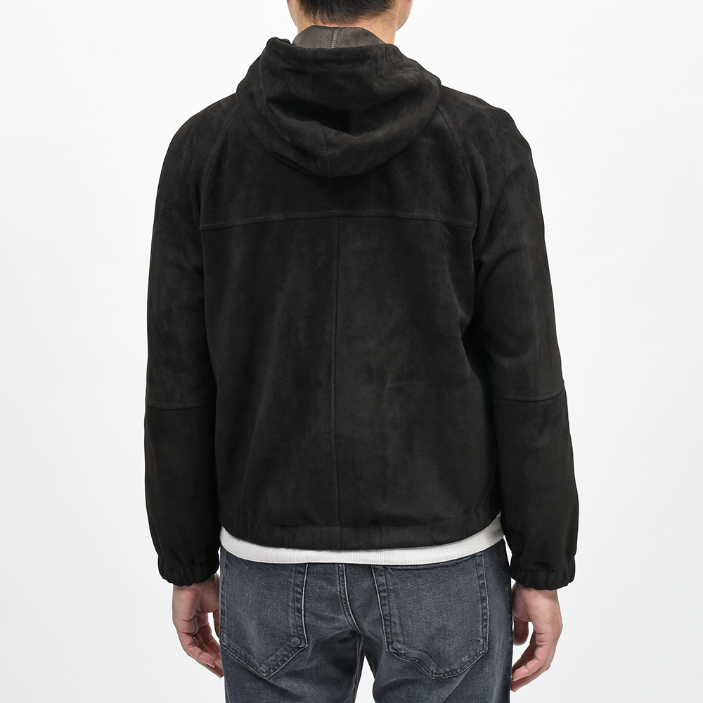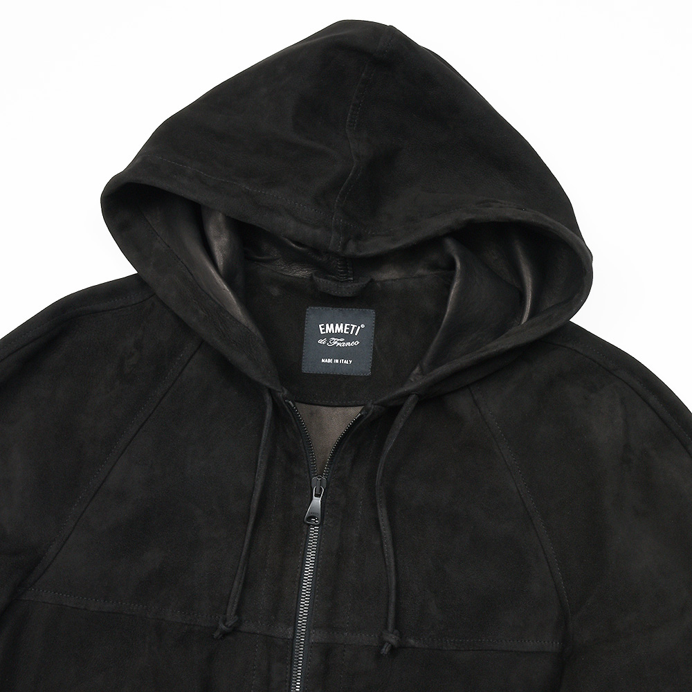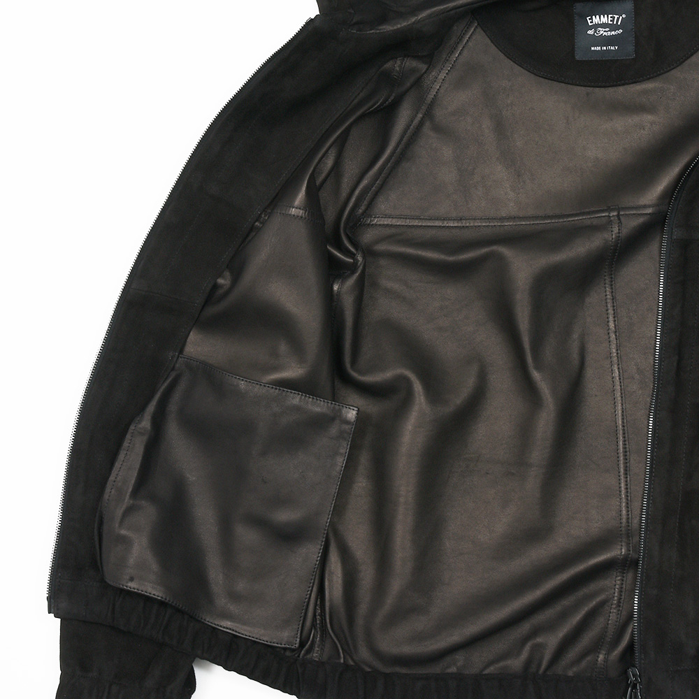 通常ラグジュアリーブランドで使用されているクオリティのレザーを、限りある着数分だけオーダーできる“SPレザー”シリーズ。こちらはEMMETI社で定番のゴートスエードよりも、少しだけ薄手なラムスエードを使用しています。滑らかで柔らかな質感に、非常にきめ細やかでしっとりとした滑りのあるタッチが高級感を漂わせています。