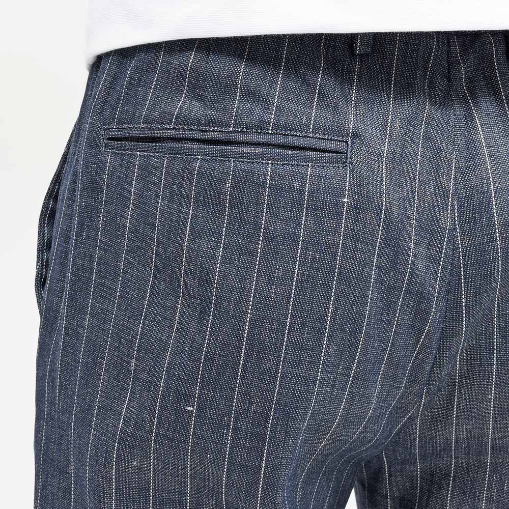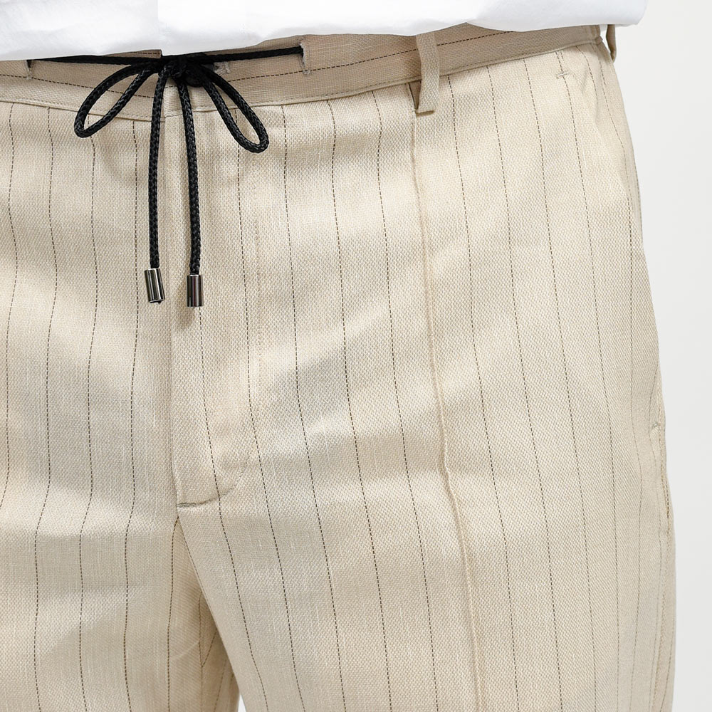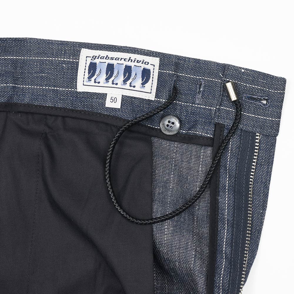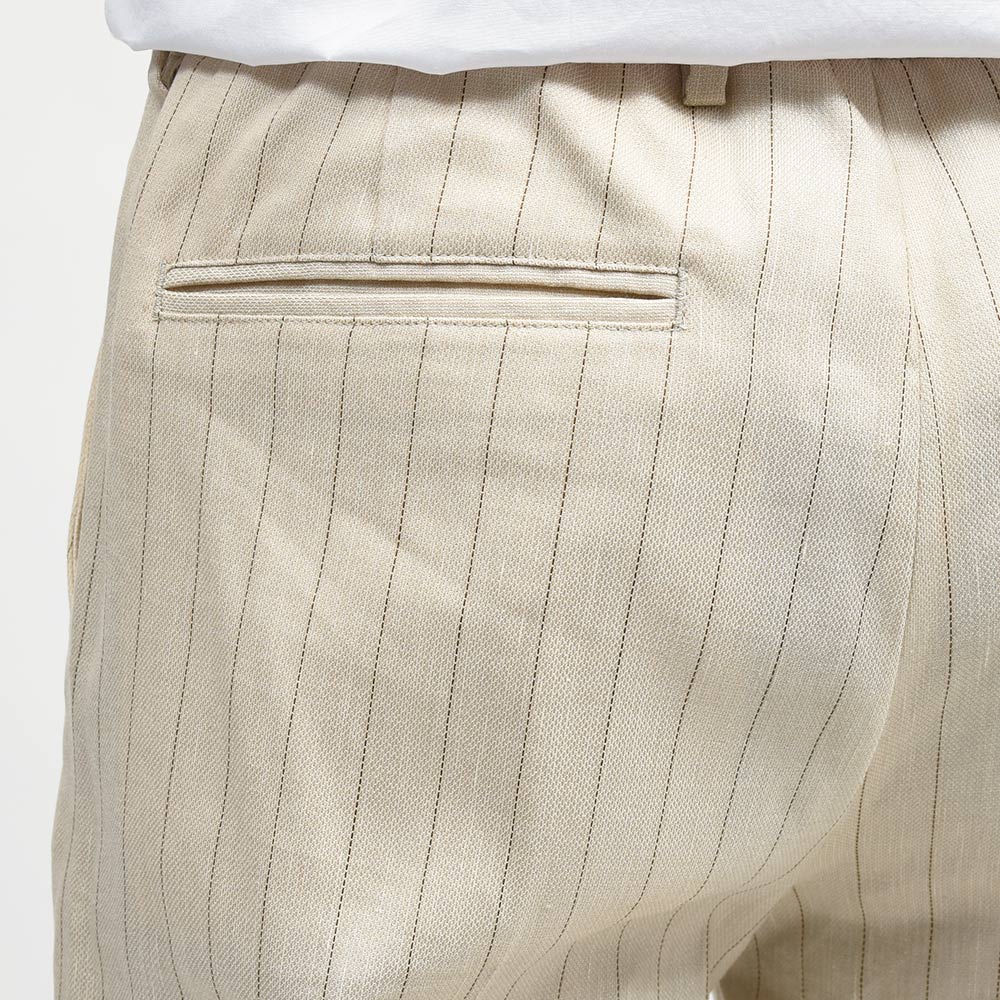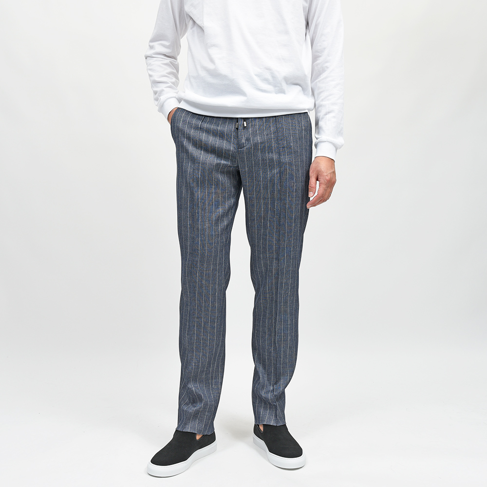 今シーズンに新登場したファブリック“HAIR LINE LINEN”。リネンらしいドライなタッチの質感を持たせながらも、ジャージーのような柔らかさとストレッチ性を持たせた実用的なリネンパンツになります。目付けは270gと軽く、また細いピッチのストライプが清涼感を生んでいる、暑い季節にピッタリな一本となっています。