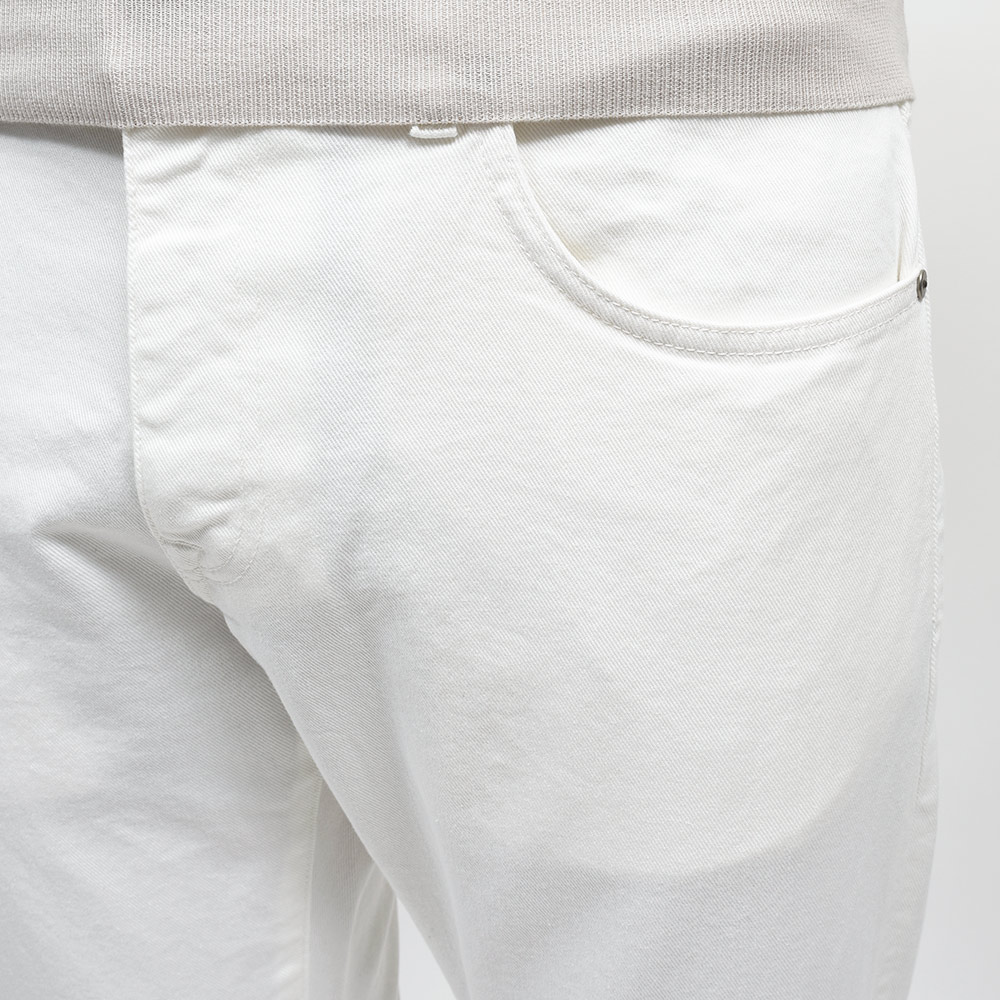 生地は目付け530gのコットンストレッチツイルのカツラギ。程よい伸縮性は快適な穿き心地をもたらし、目付けよりも少し軽く感じる生地感は、シーズンを問わず着用できる高い汎用性があります。