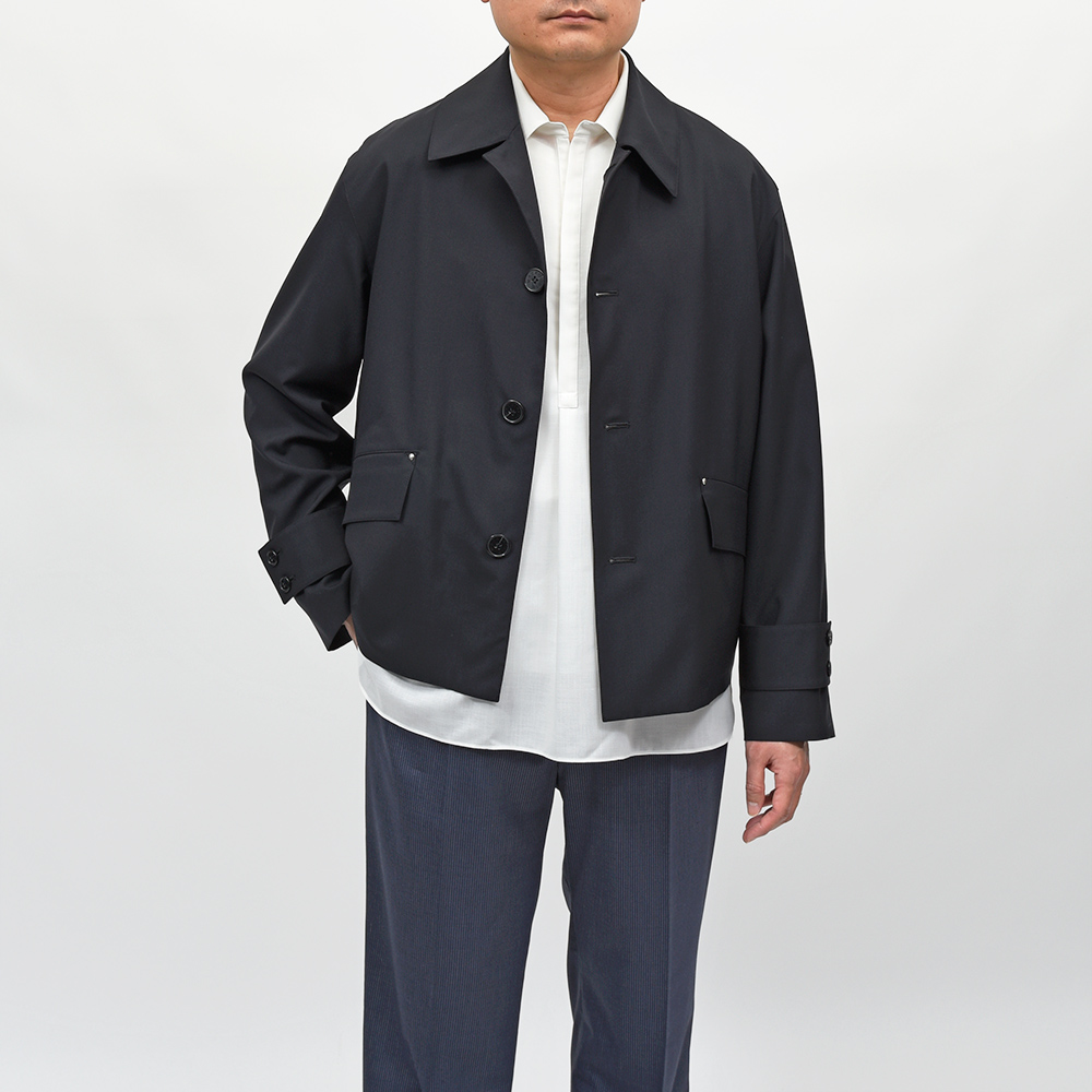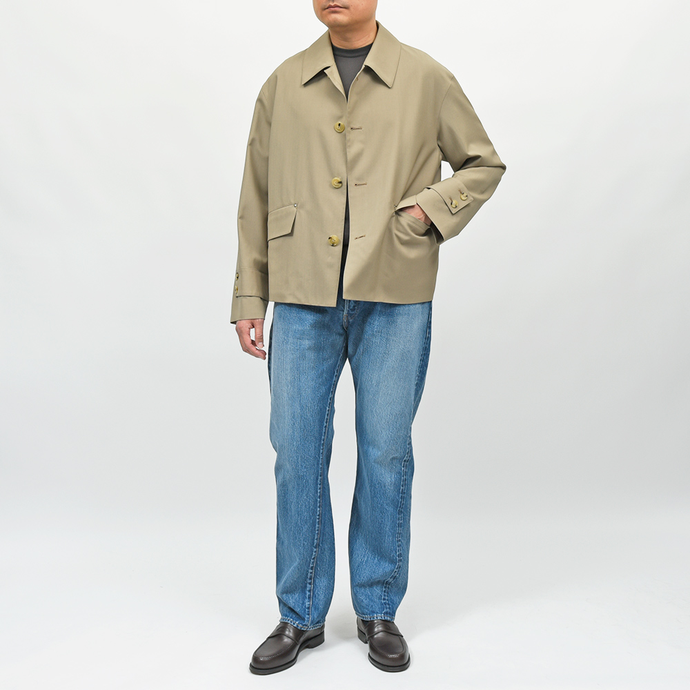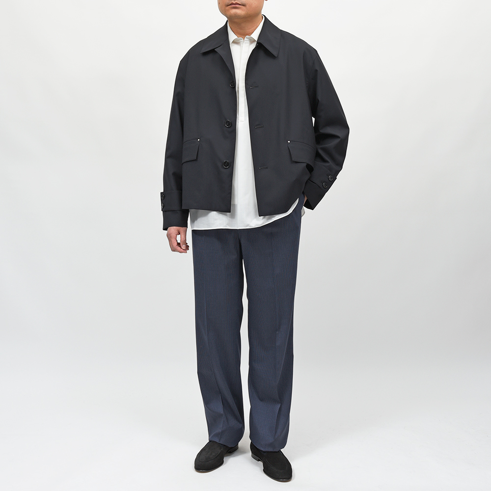 今やMACKINTOSHを代表するモデルと言っても過言ではない“HUMBIE(ハンビー)”。こちらはオーバーサイズ・ワイドシルエットのHUMBIEをオンシーンでも着用しやすいよう、フィッティングをアレンジした“HUMBIE SL”の着丈を短くした“HUMBIE SL SHORT”になります。HUMBIEらしいオーバーサイズでありながらも、バランスの取れたミニマルで上品な佇まい。時代性を踏まえるとオンでもオフでも着回せる一着となっています。
