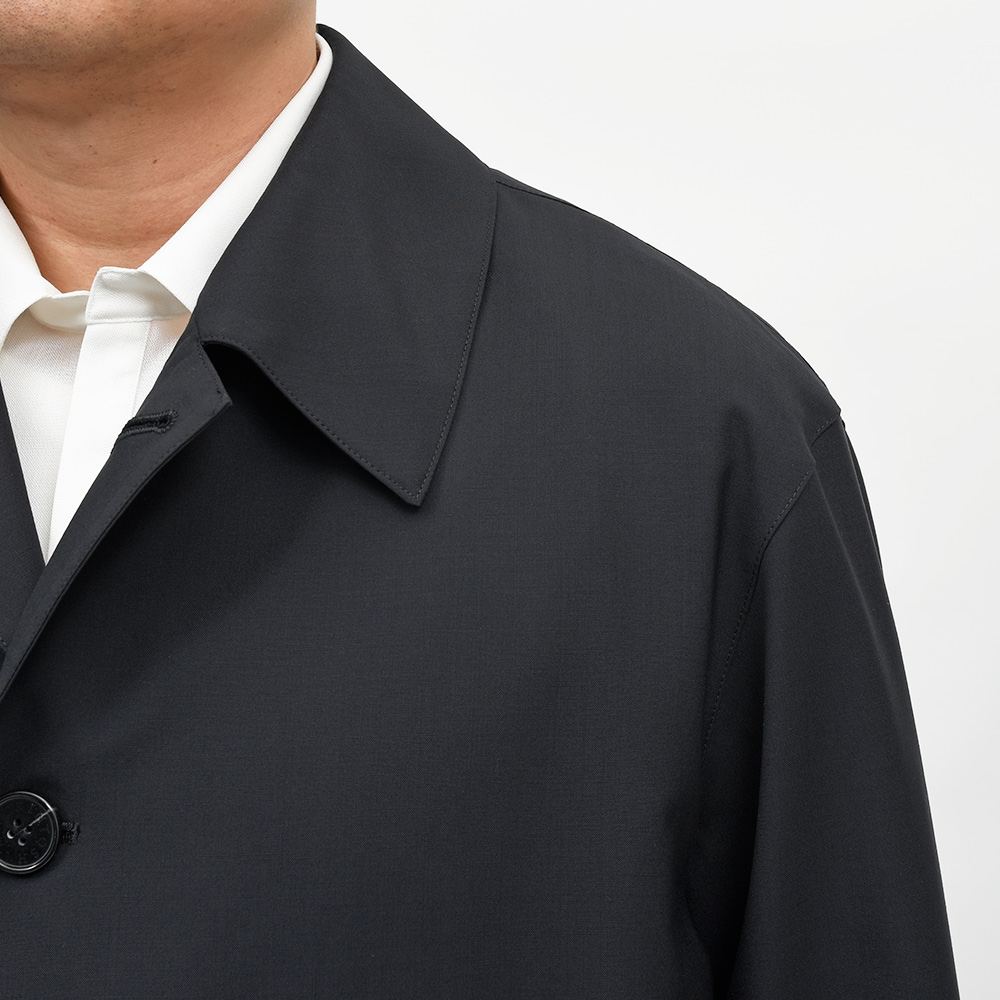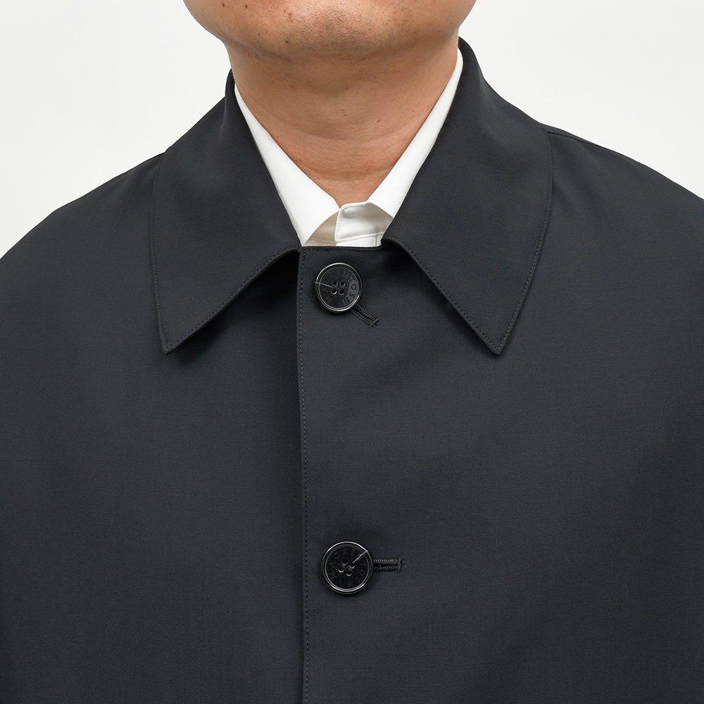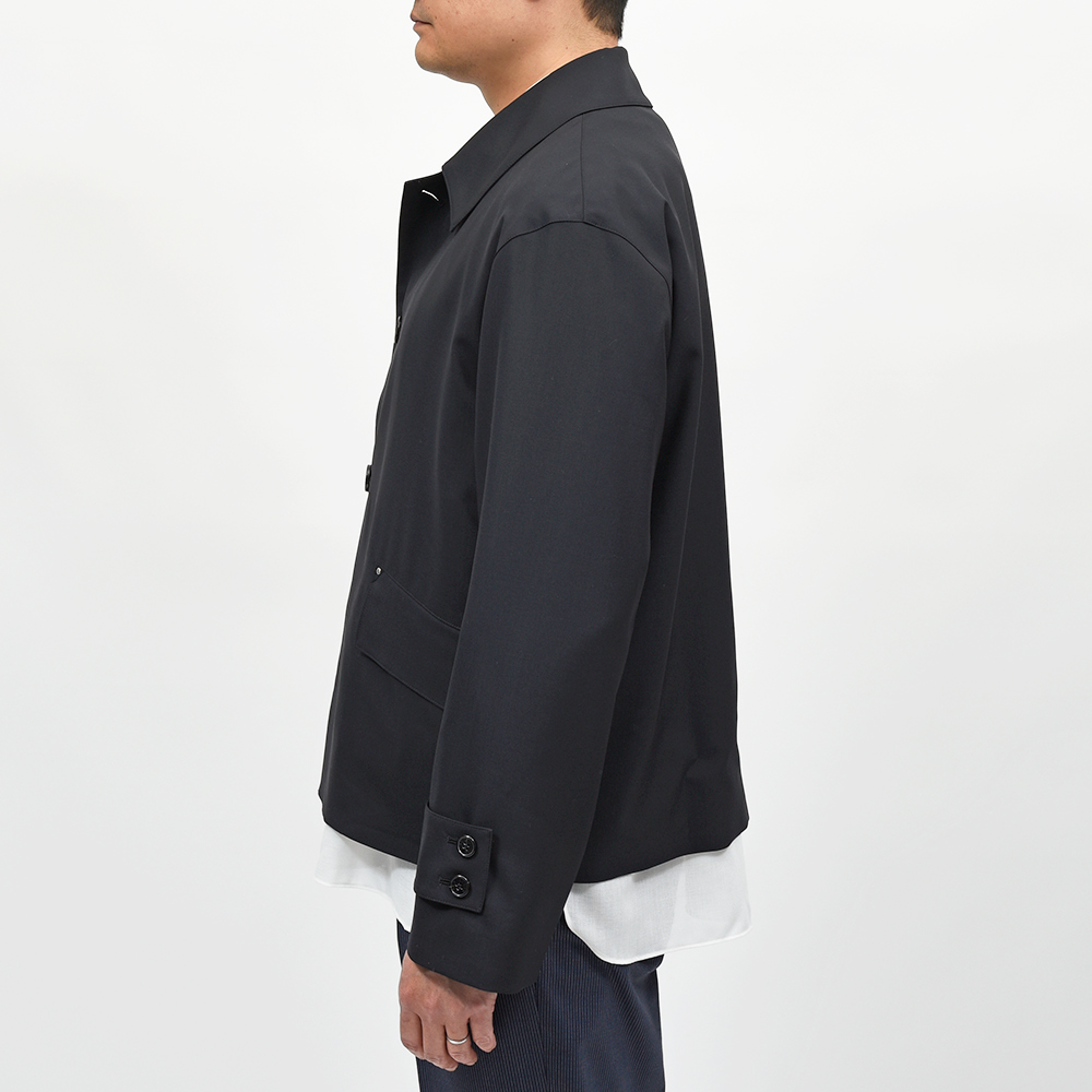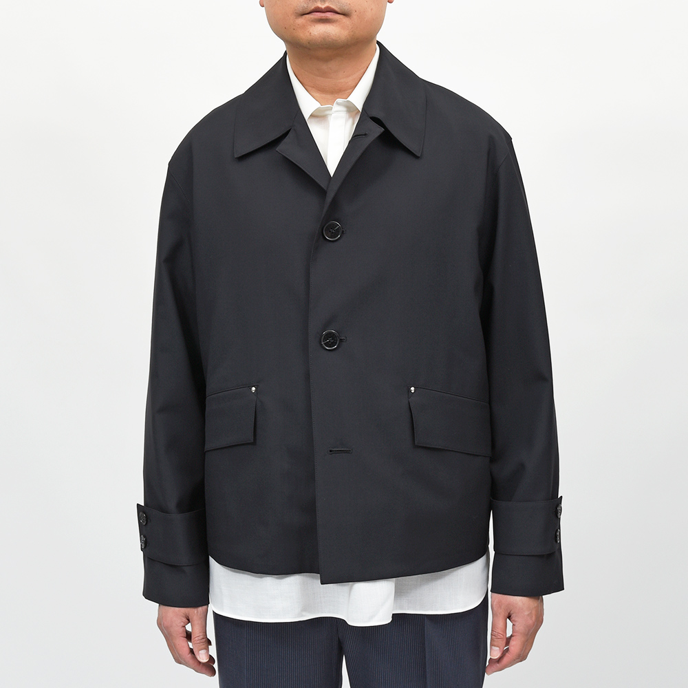 今やMACKINTOSHを代表するモデルと言っても過言ではない“HUMBIE(ハンビー)”。こちらはオーバーサイズ・ワイドシルエットのHUMBIEをオンシーンでも着用しやすいよう、フィッティングをアレンジした“HUMBIE SL”の着丈を短くした“HUMBIE SL SHORT”になります。HUMBIEらしいオーバーサイズでありながらも、バランスの取れたミニマルで上品な佇まい。時代性を踏まえるとオンでもオフでも着回せる一着となっています。
