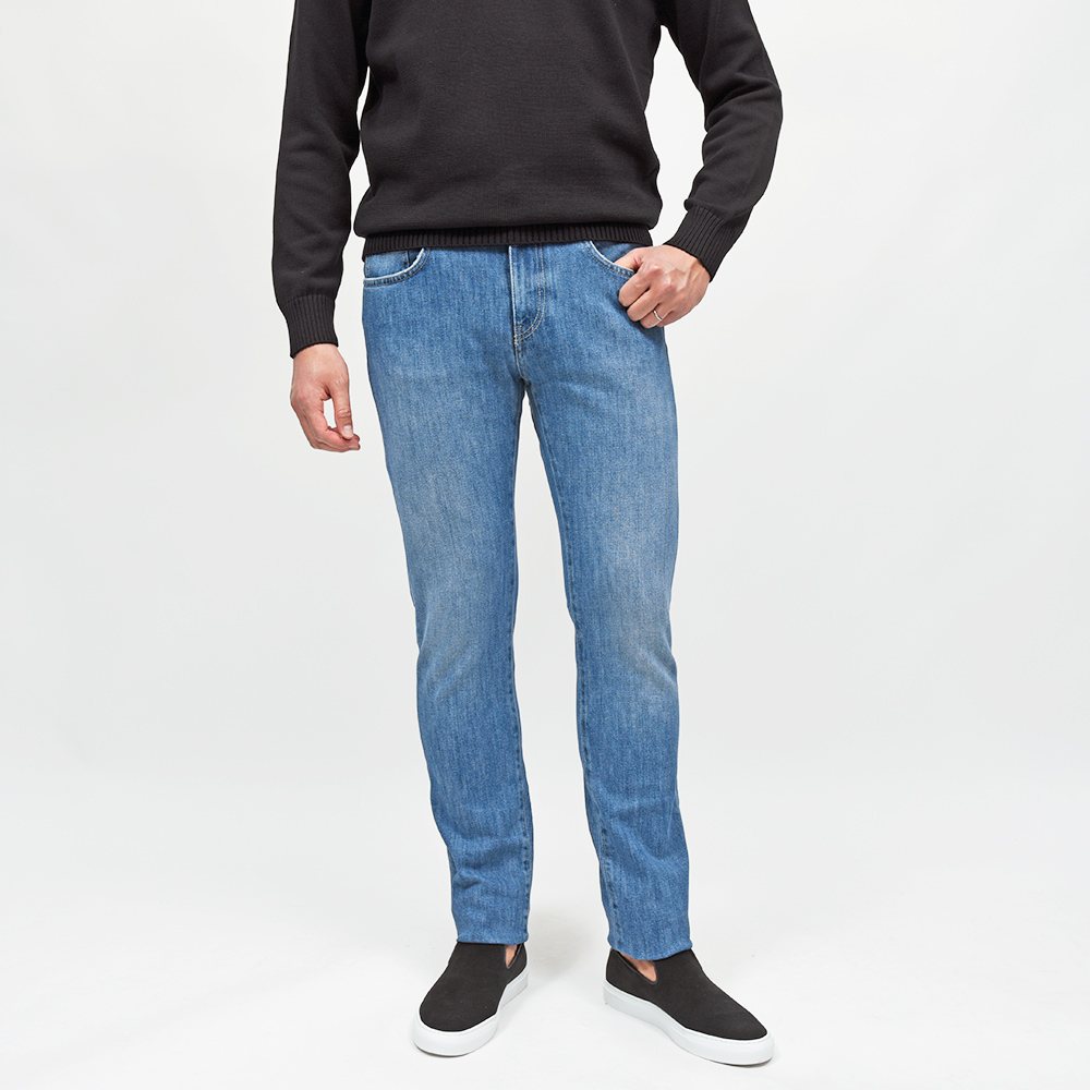 程よくストレッチの効いたファブリックを使用したこちらは、スリムテーパードシルエットのニューモデル“SAMBA”。PT TORINO DENIMの代名詞とも言えるスリムシルエットの“SWING”の後継として今シーズンより登場したSAMBAは、SWING同様のスリムなシルエットですが裾幅を少し広くしテーパードを少し緩やかにすることで、スリムでありながらも時代に合わせた見た目に変化しています。