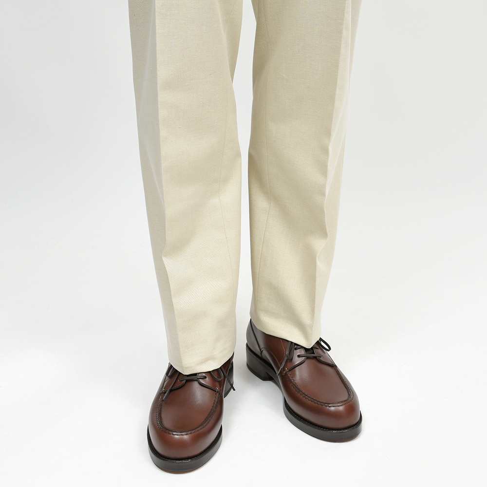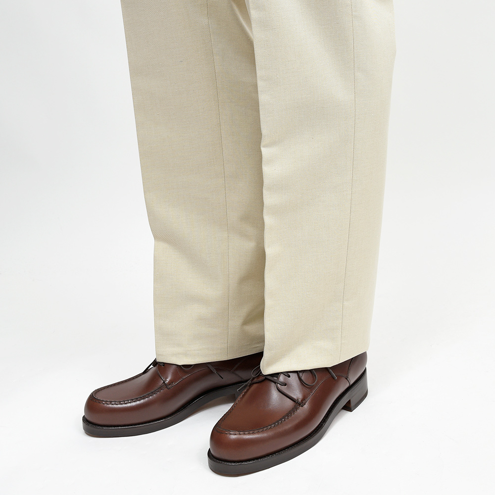 こちらは世界最高峰のカーフレザーを製造するフランスのタンナー“DUPUY”社のANILOU CALFを使用。非常にキメ細やかなスムースレザーの表情に、適度なハリとしなやかさを併せ持ち、また美しい艶が品のある佇まいです。