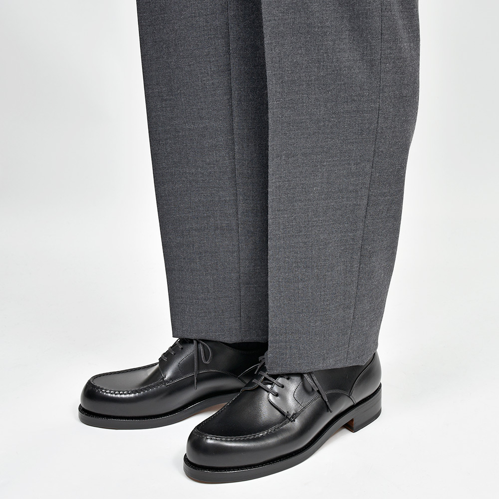 Uチップシューズのモデル“FG584”。ハンドソーンウェルテッド製法で仕上げられており、ダブルソールながら側面の湾曲とコバのバランスが秀逸な一品。カーゴパンツやワークパンツといったアイテムは勿論ですが、ジャケットにウールスラックスといったドレススタイルにもハマる汎用性があります。