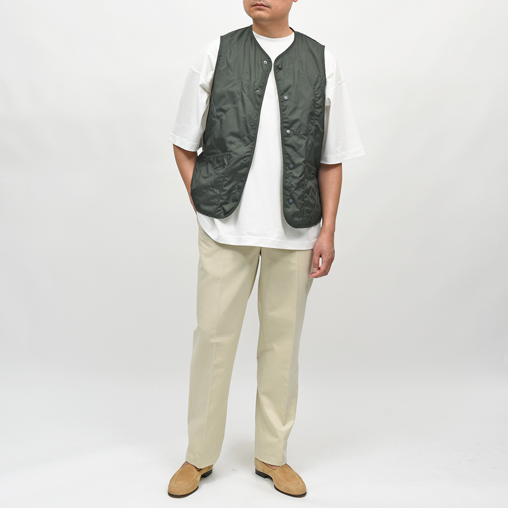 カラーレスのデザインがインナー使いしやすい、レギュラーフィットのスタンダードモデルの“THORNHAM(ソーンハム)”を、アンワディッド(中綿なし)にし裏地をメッシュで仕上げた軽量ベスト。弱撥水の100%ポリエステル素材のラブンスターを使用し、軽量で丈夫な生地はコンパクトに折りたたむこともできます。
